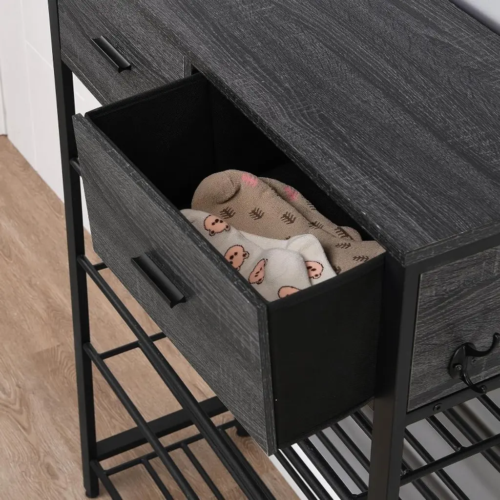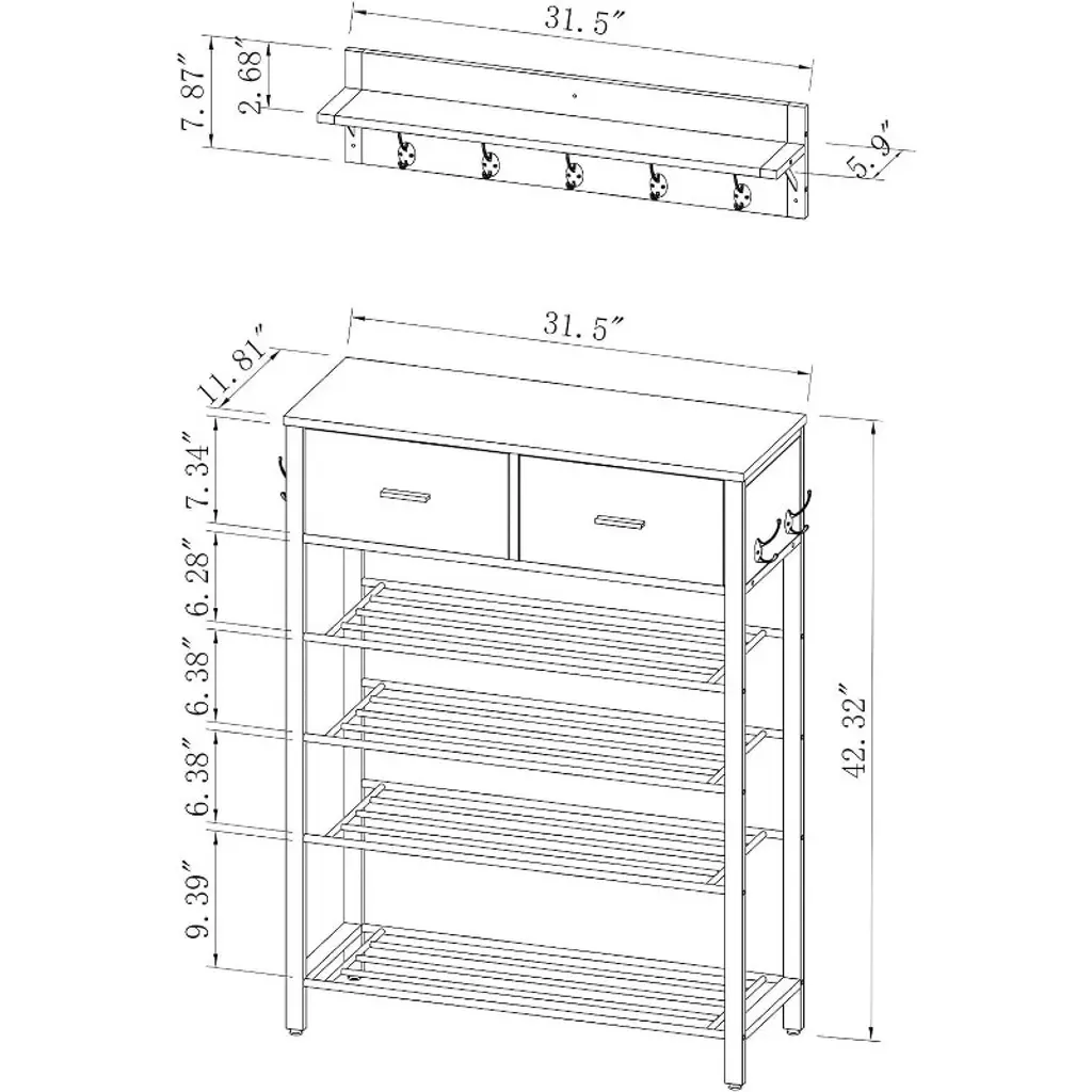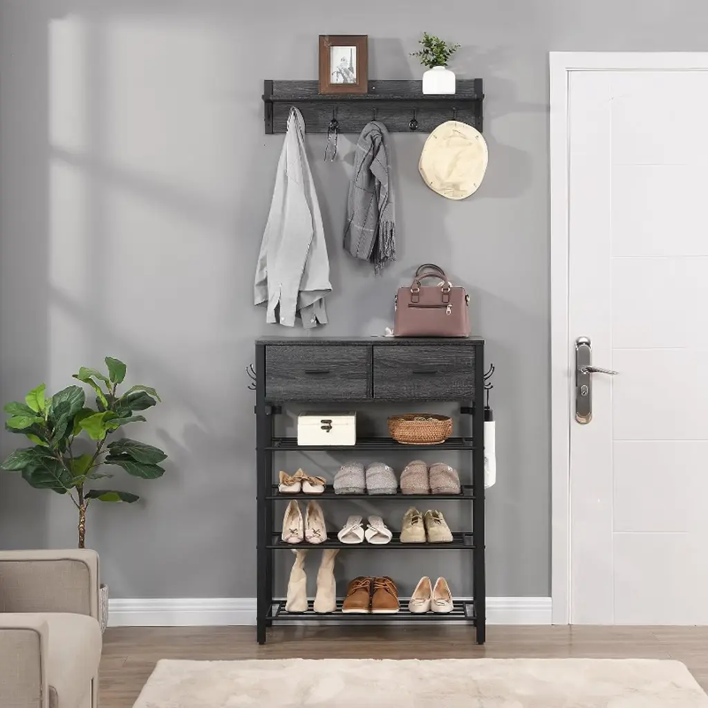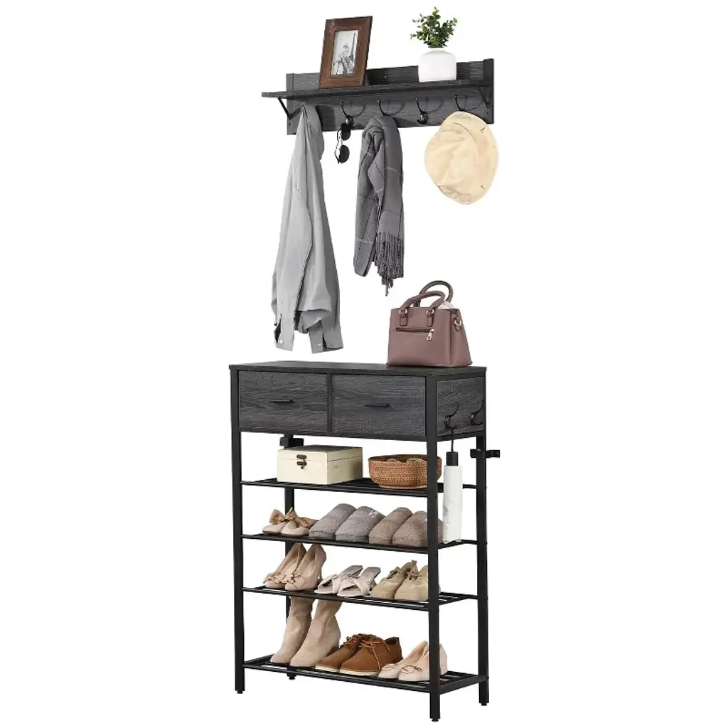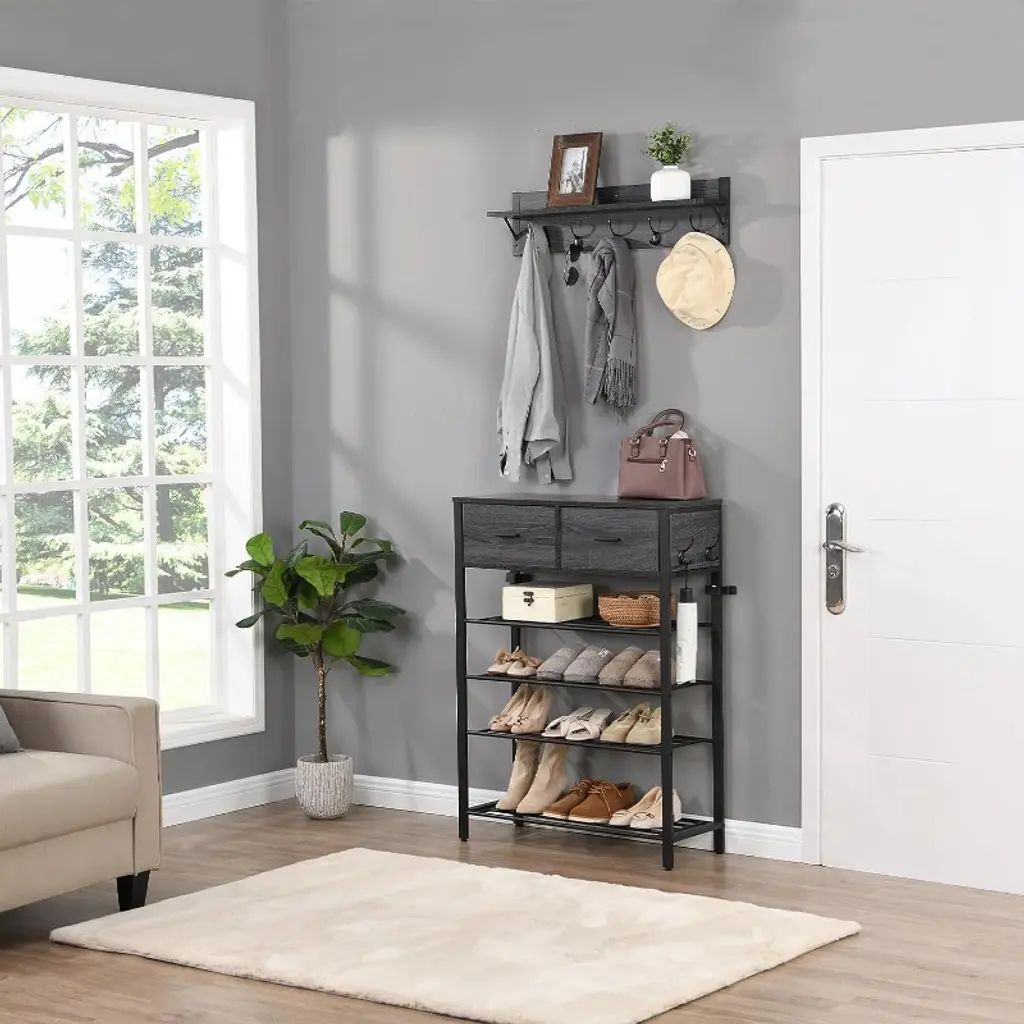 Shoe Rack, 4 Tier Shoe Storage Organizer With 2 Drawers, Metal Shoe Shelf Shoe Stand Shoes Storage Rack Hallway Shoe Rack With Storage And Hooks