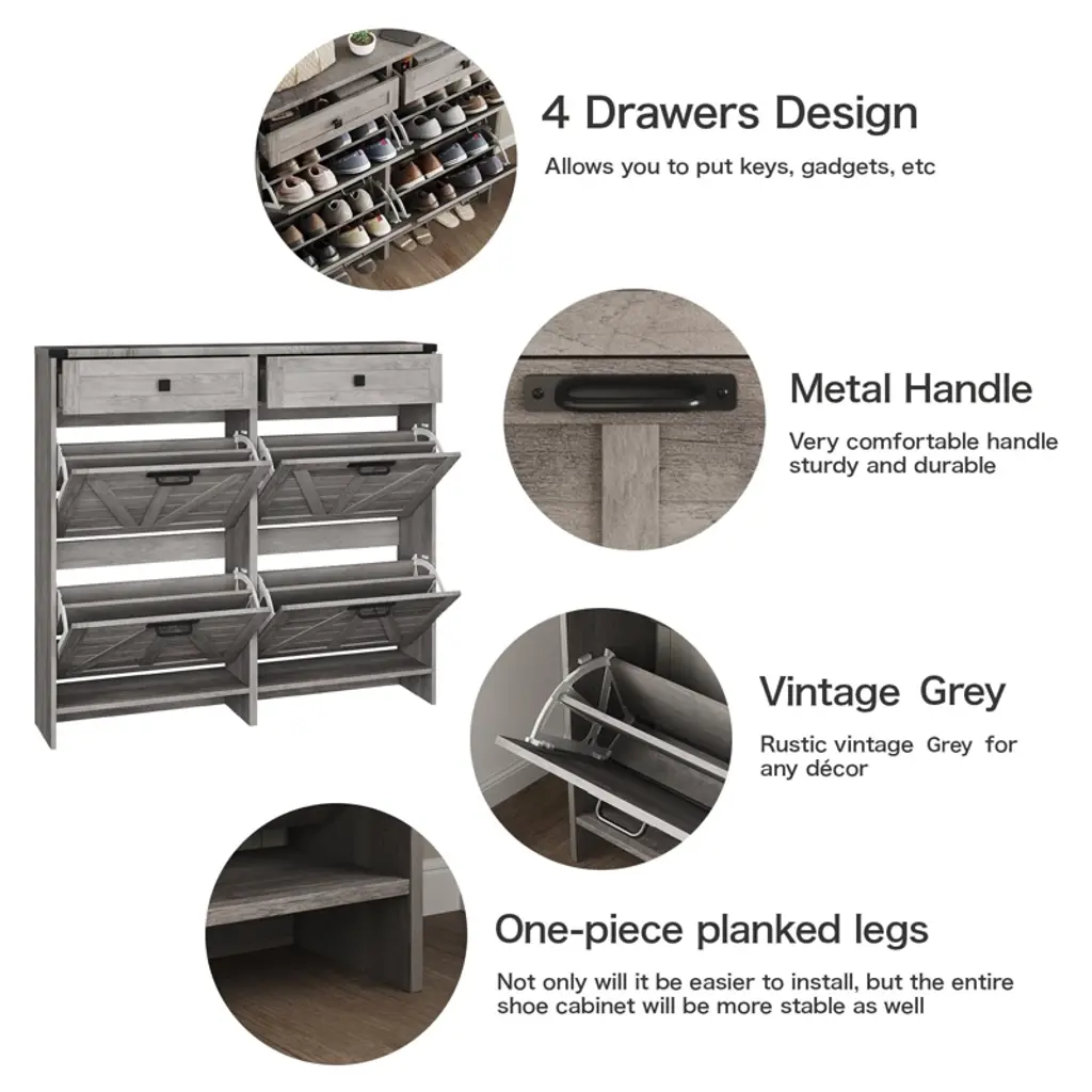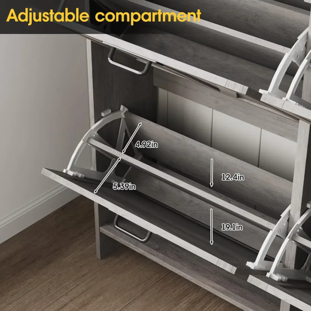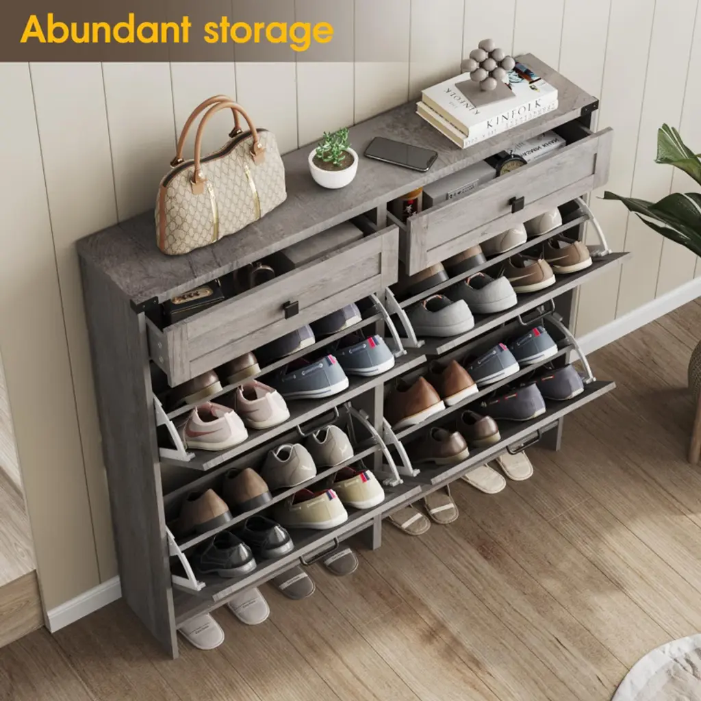 Shoe Storage Cabinet, Slim Freestanding Shoe Rack With Flip Drawers, Grey