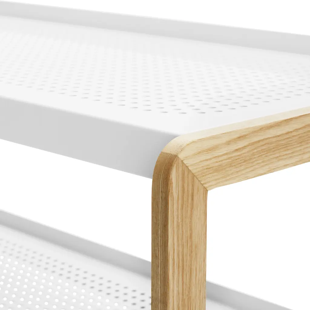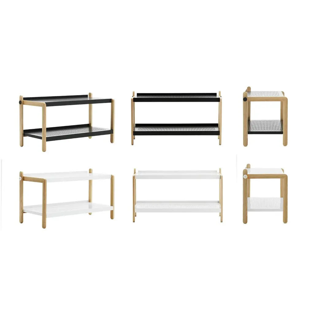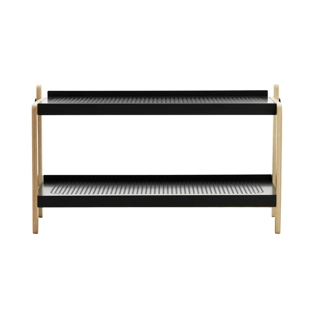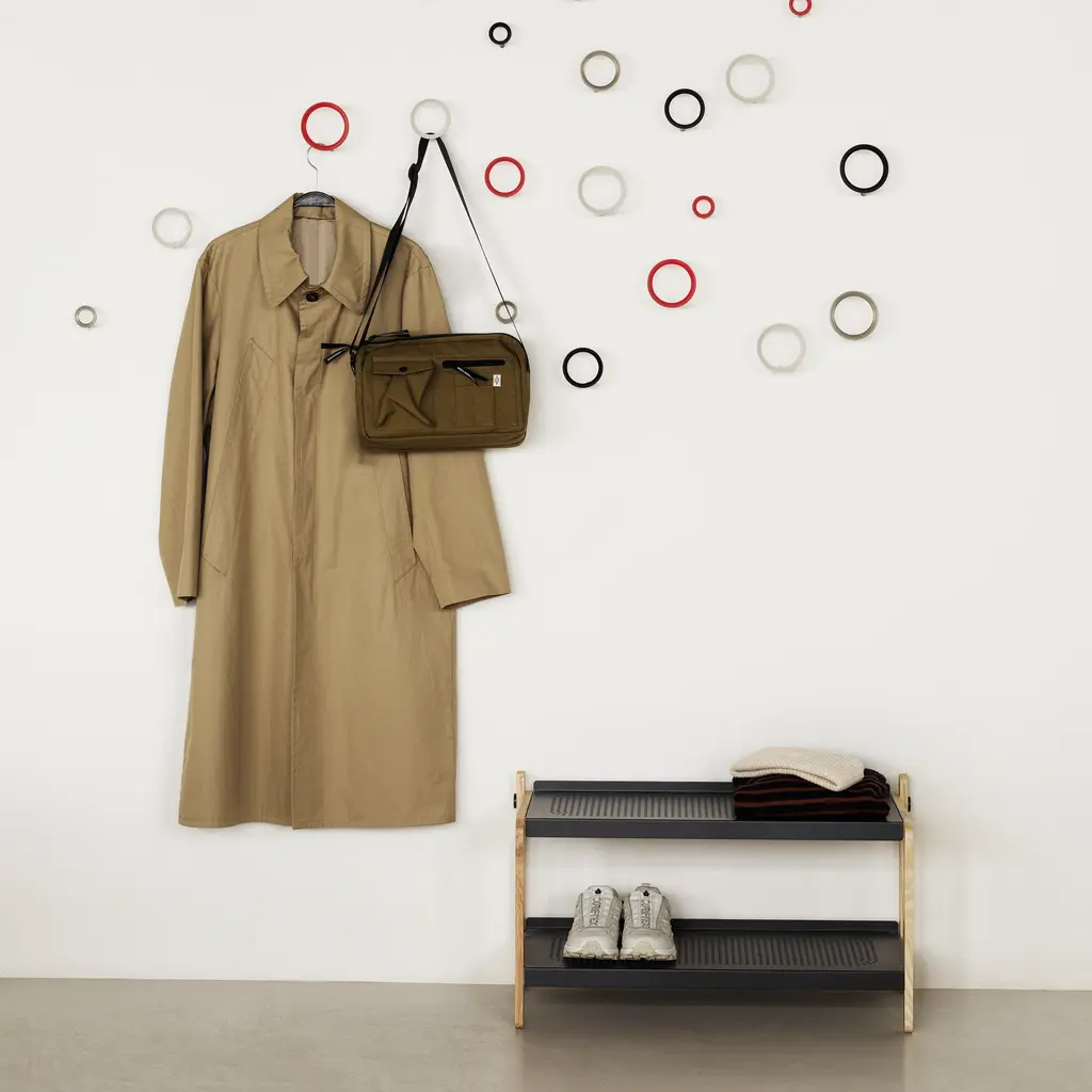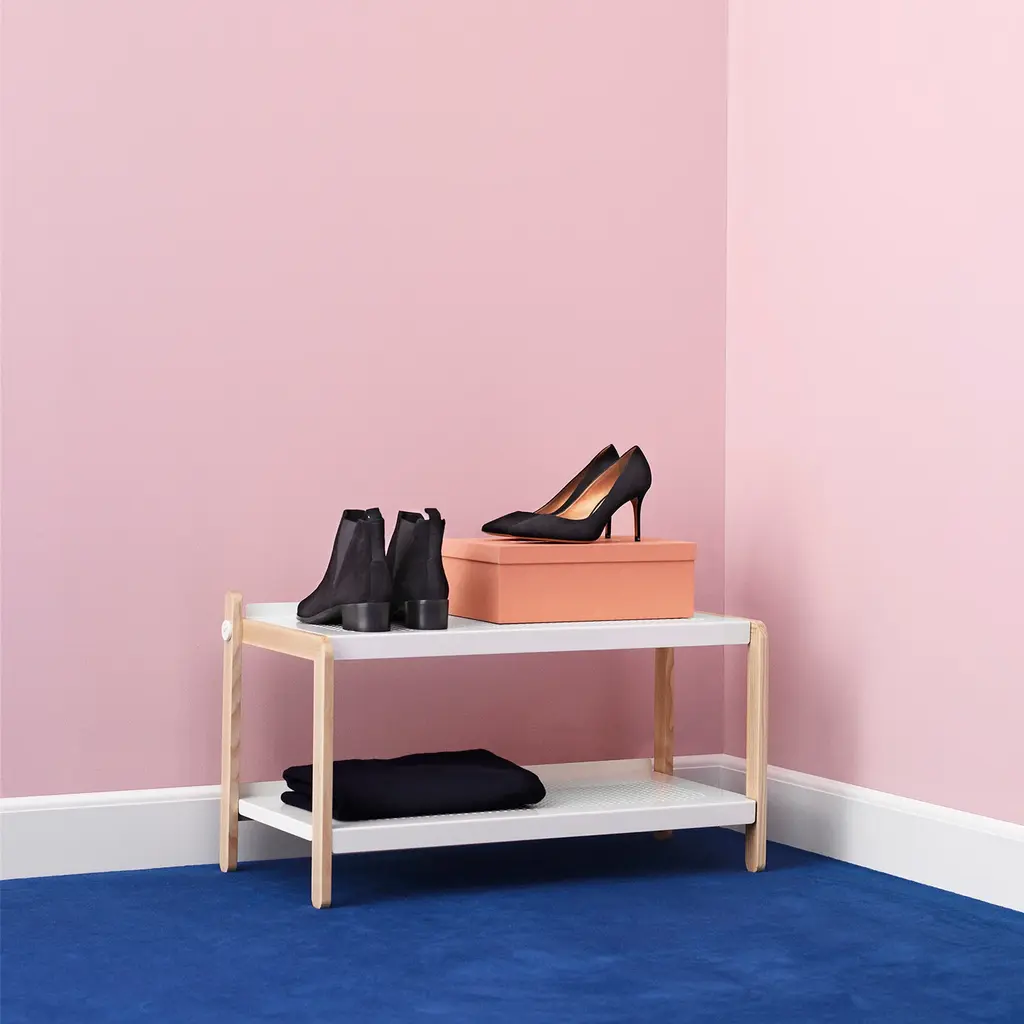 Sko makes quick work of storing shoes and boots and is attractive enough to leave out in the hallway or bedroom. Simon Legald goes for an industrial feel, with shelves in perforated steel and visible accentuated screws. Available in white or grey, the unit’s spare lines and natural ash frame also bespeak its Scandi design bonafides.