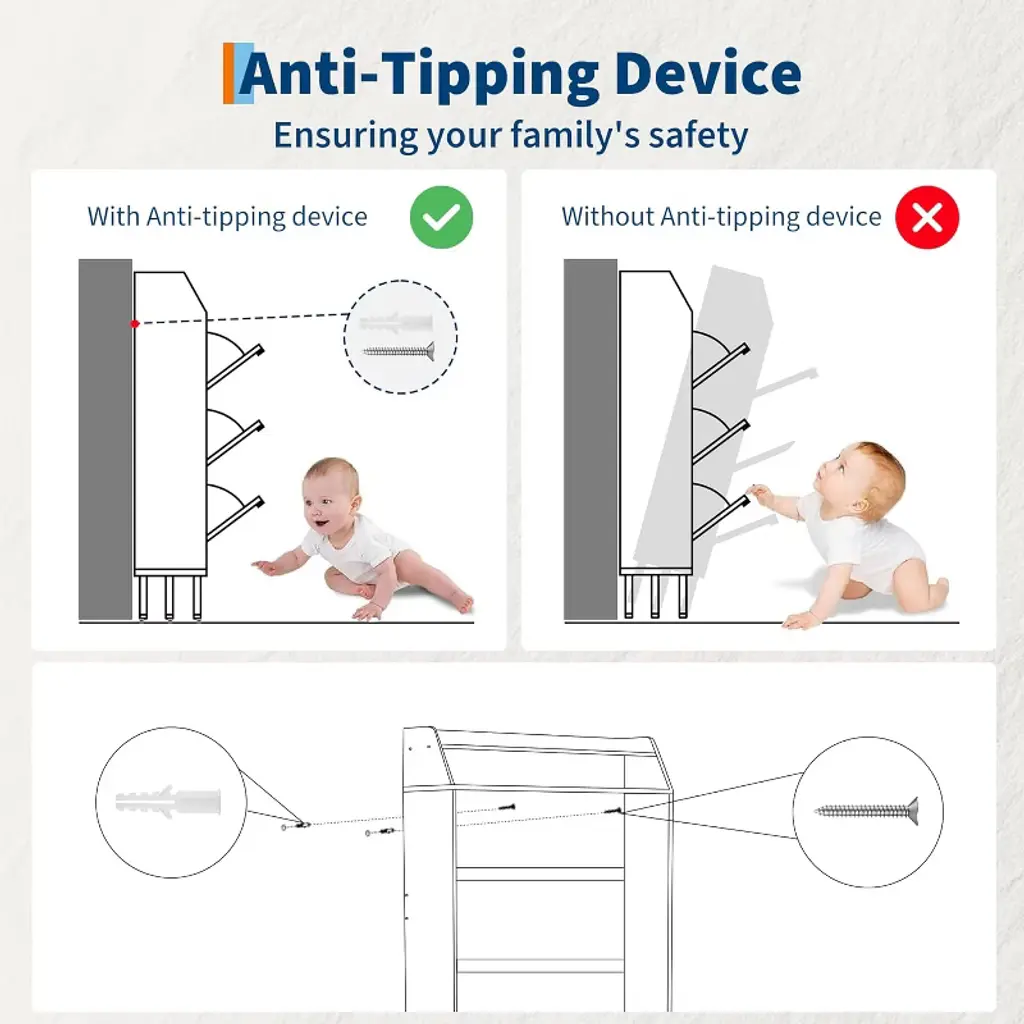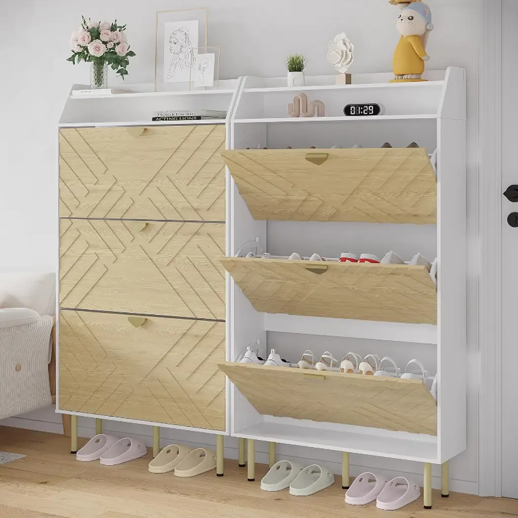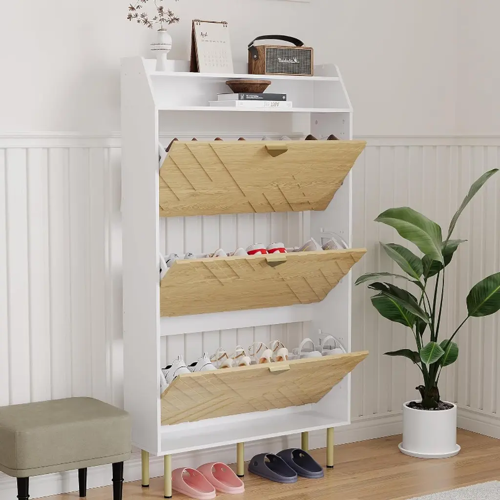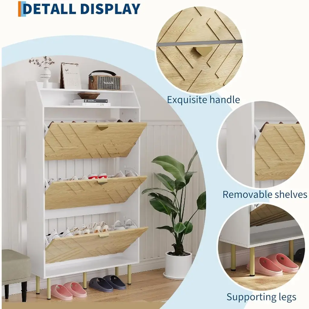 Slim Shoe Cabinet With 3 Drawers, Wood Grain & White Finish, Hidden Entryway Shoe Rack With Top Shelf For Hallway, Closet, Or Bedroom