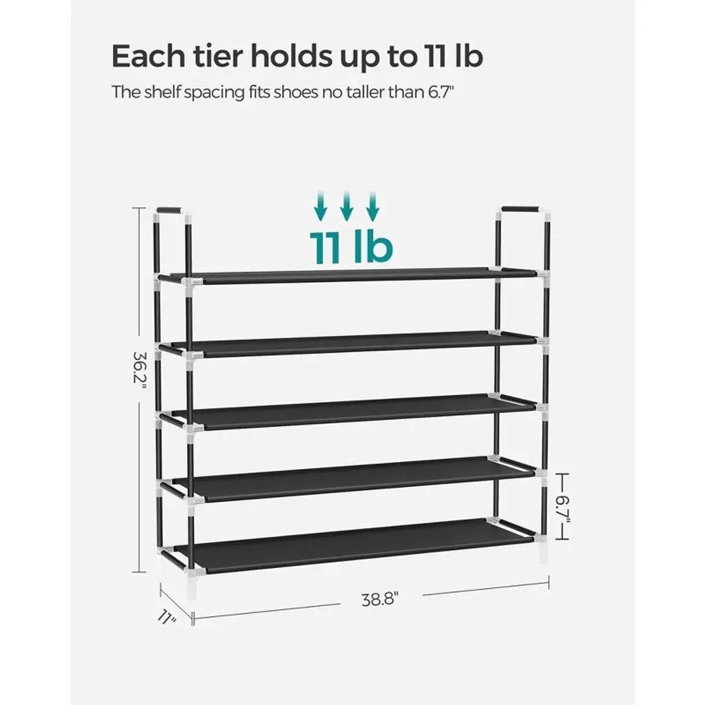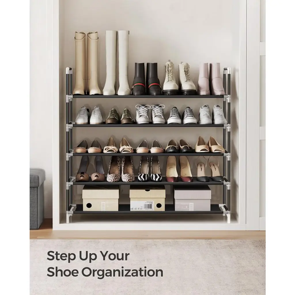 Songmics 5 Tiers Shoe Rack Storage Organizer Black 39"l Holds 20-25 Pair Of Shoes
