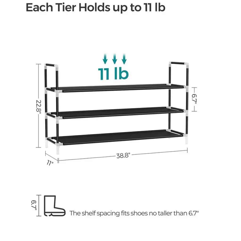 Songmics Shoe Rack 3-tier Shoe Storage Shelf For 18 Pairs Shoes Black