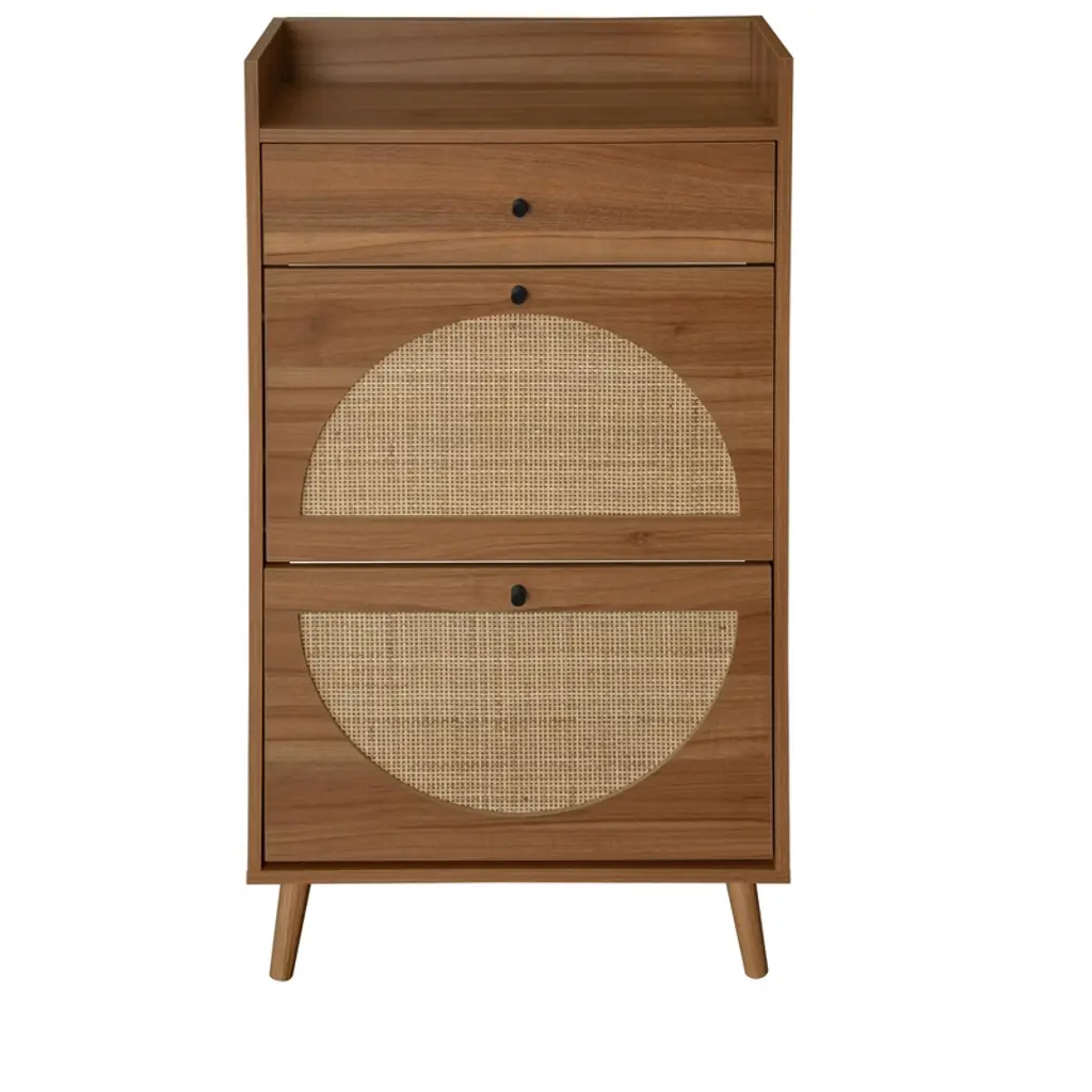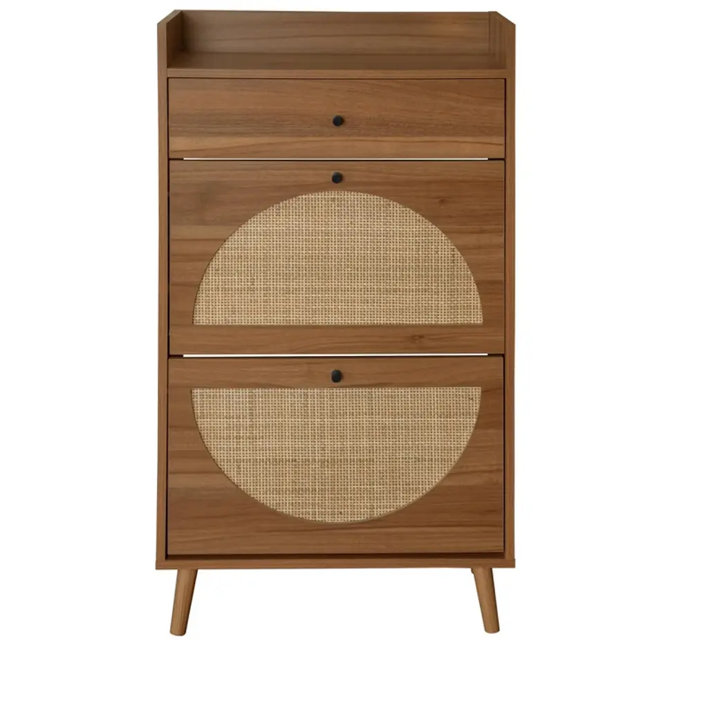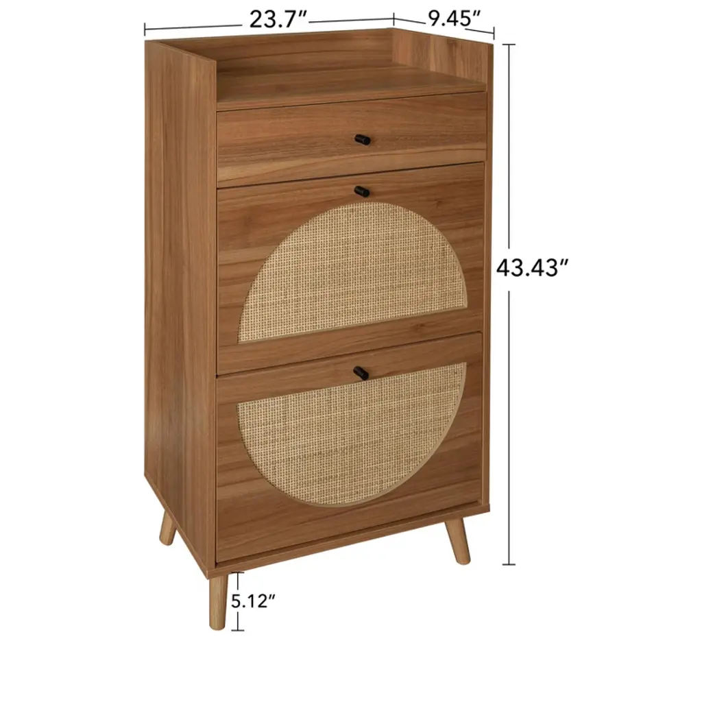 Tiramisubest 2 Rattan Doors 1 Drawer Cabinet, Shoe Rack, Double Layer