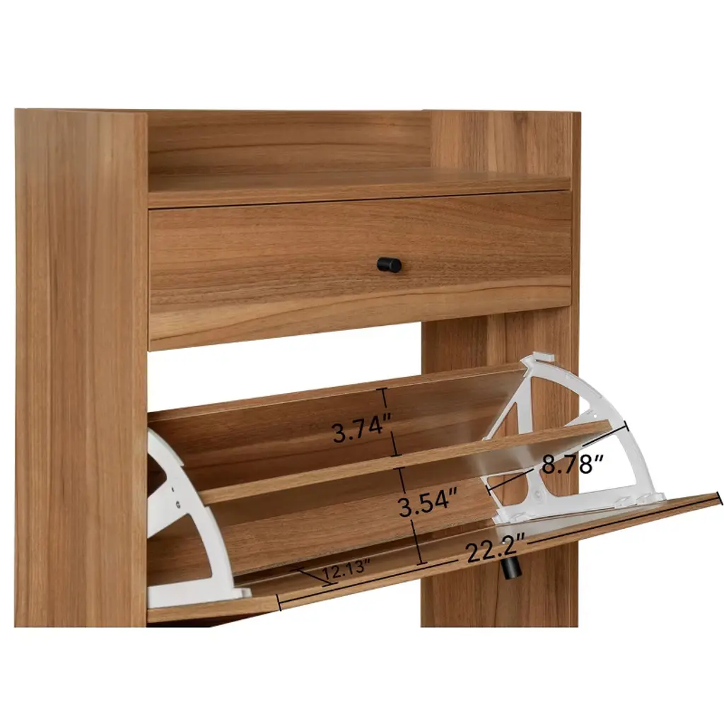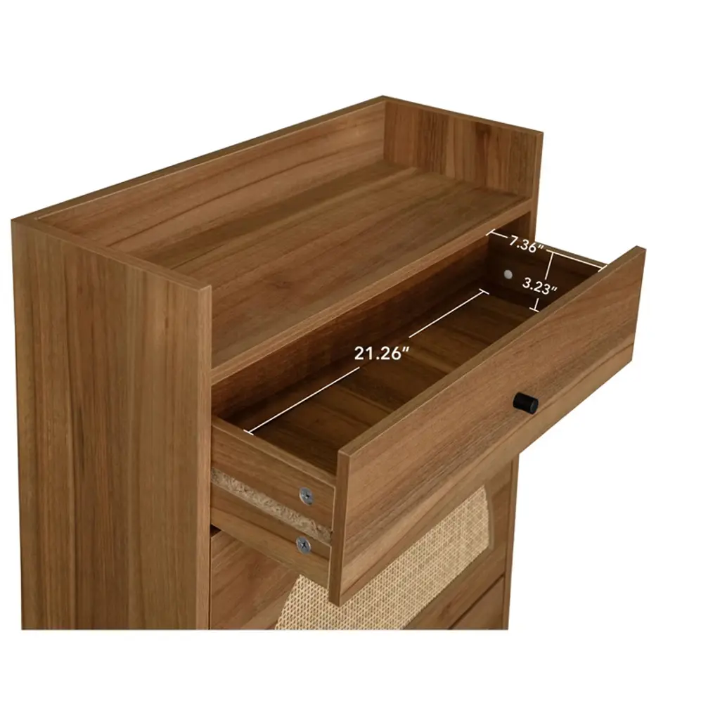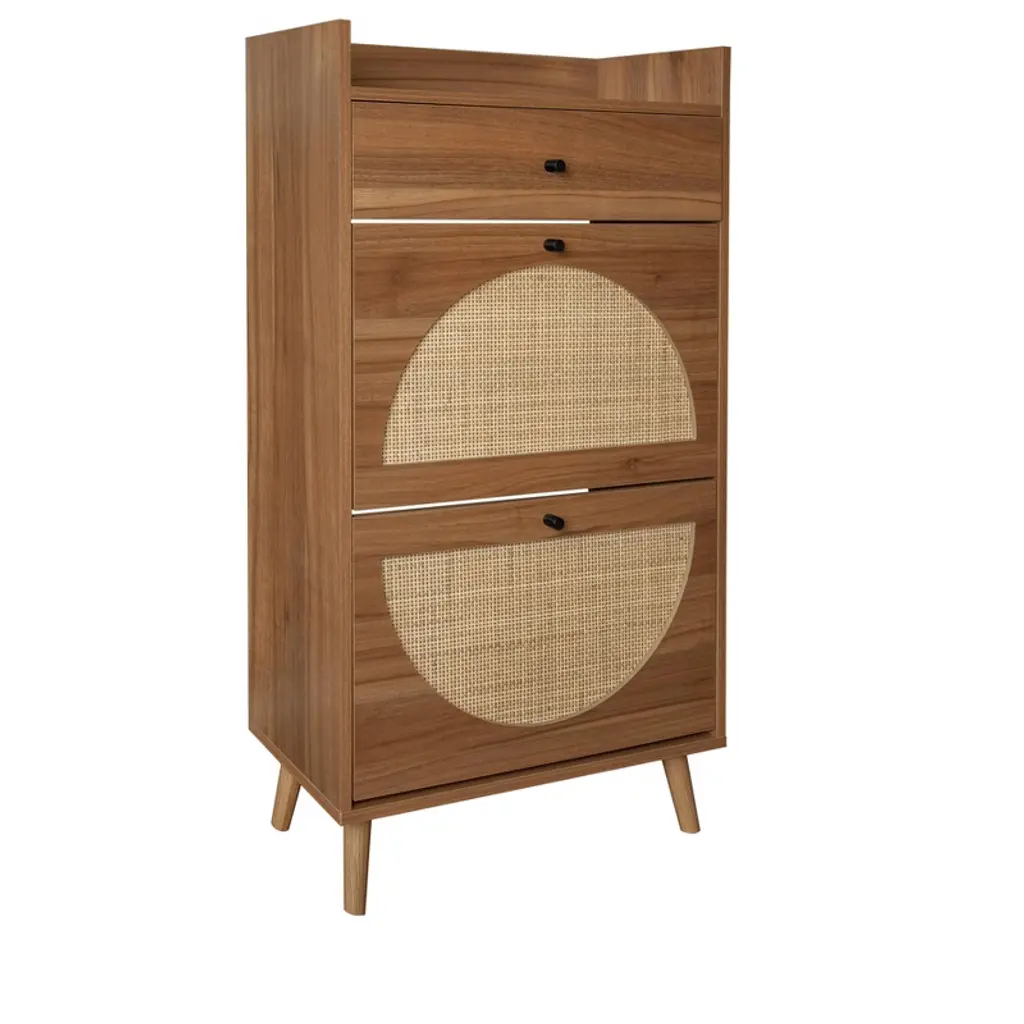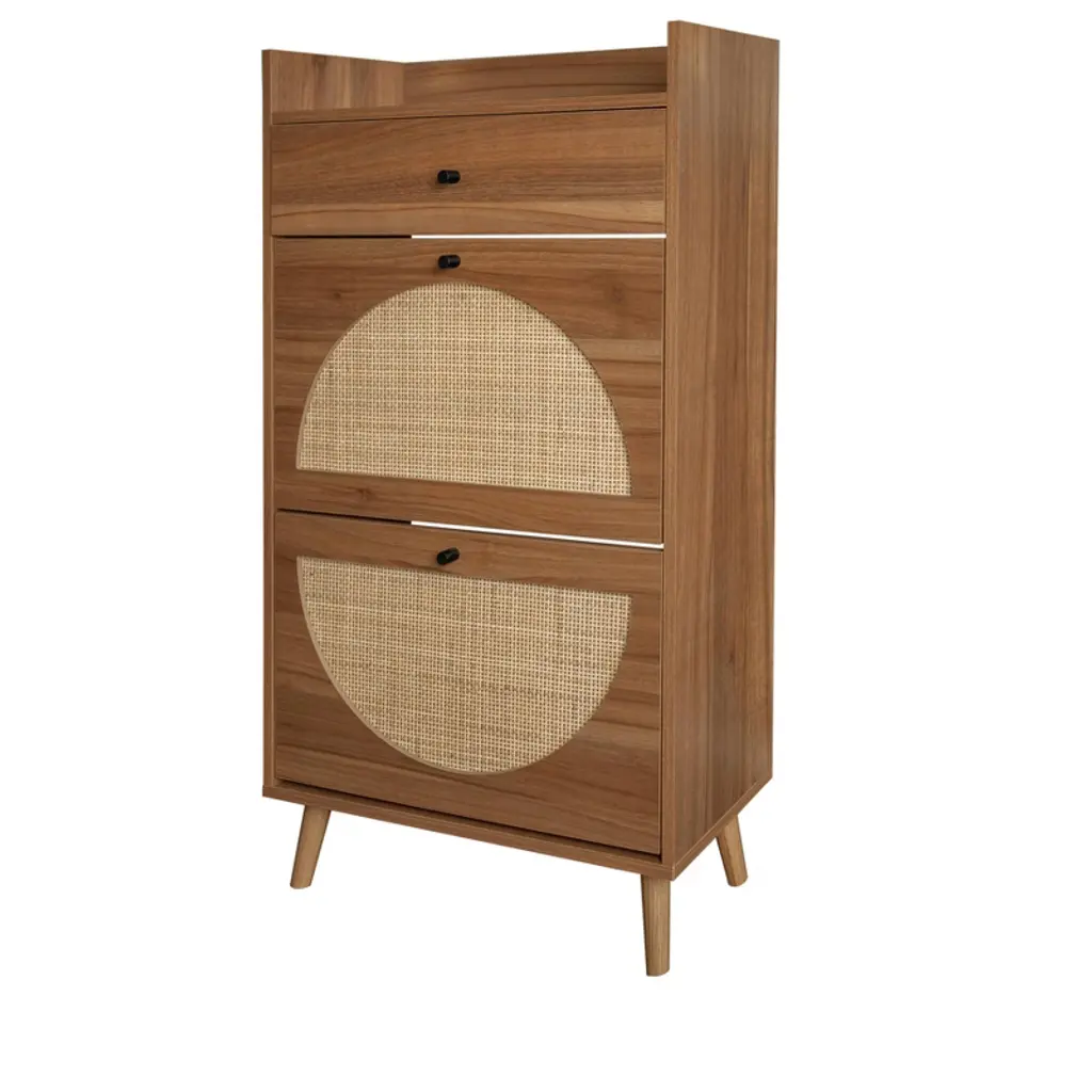 Tiramisubest 2 Rattan Doors 1 Drawer Cabinet, Shoe Rack, Double Layer