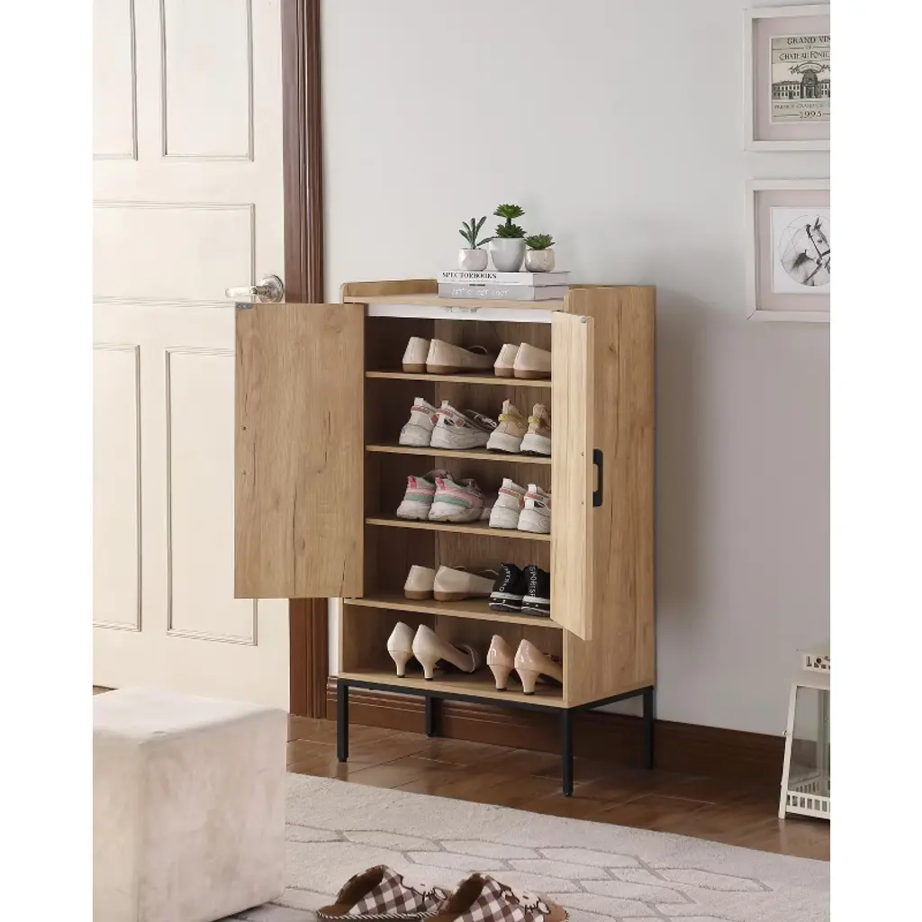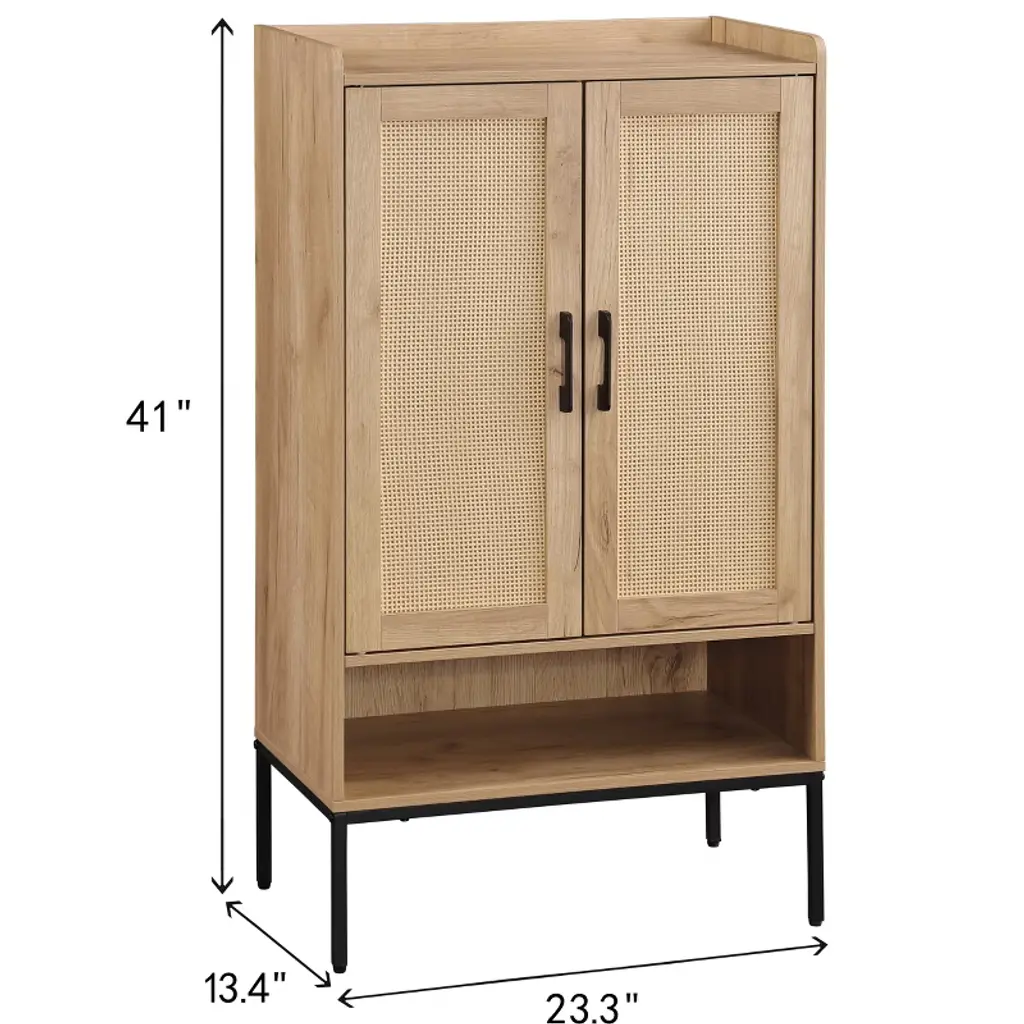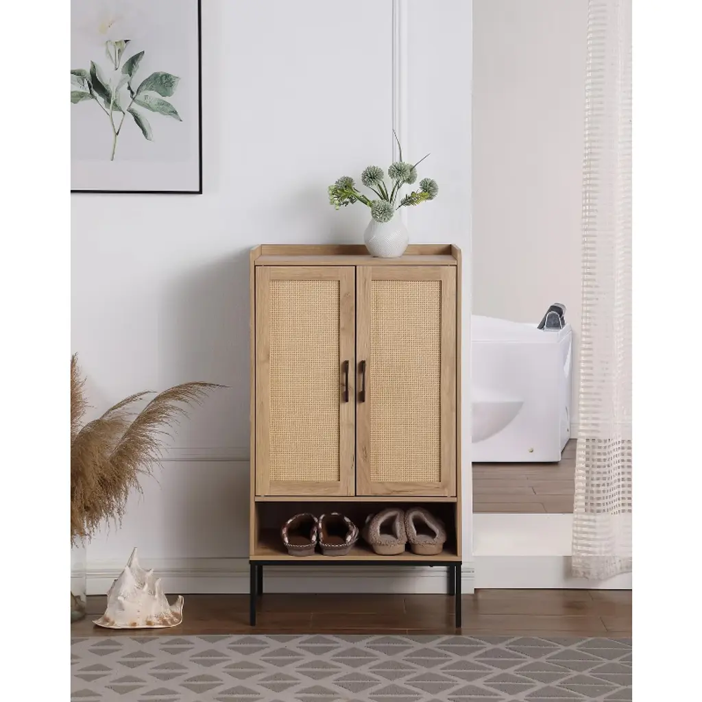 Tiramisubest Shoe Cabinet With Rattan Doors, 5-tier Wooden Shoe Rack Organizer With Open Shelves, Entryway Hallway Storage, Natural & Black