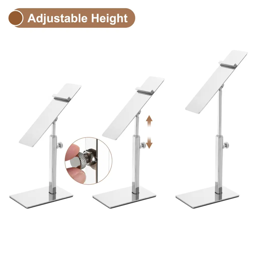 The shoe display stand is crafted from thick stainless steel, ensuring durability and resistance to rust. Its simple yet distinctive design enhances the visual appeal of the shoes without overshadowing them. The stand is flexible, supporting shoes according to their size and shape. It is perfect for showcasing a variety of footwear, from sandals to high heels, at home or in retail environments. This stand helps keep shoes organized and visually appealing, making it an excellent addition to any display setup.