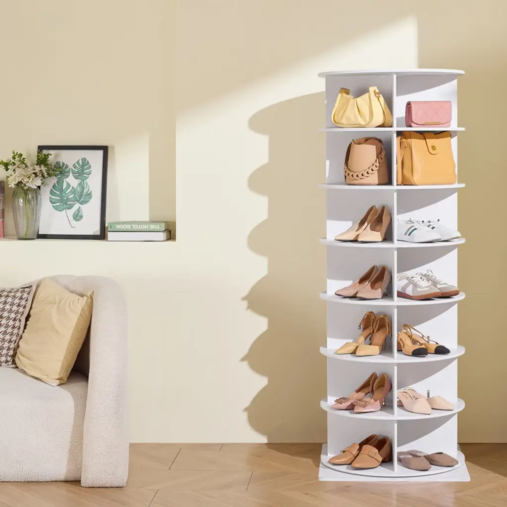 Vevor 7 Tiers Rotating Shoe Rack Tower, 360°spinning Shoe Display, Revolving Shoe Rack Storage Round Carousel, Lazy Susan Shoe Rack Organizer, White