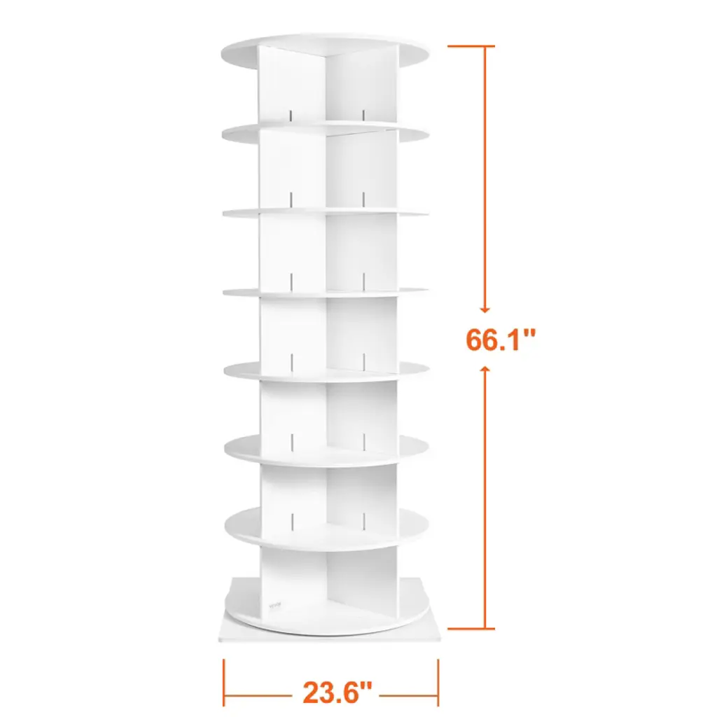Feature: 360° Rotating: This 7-tier rotating shoe rack combines smart storage with easy access, so you can neatly organize and display your shoes with ease. Its 360° rotating design makes grabbing your shoes quick and simple, while adding a stylish, rotating touch to your space. Multi-Scene Use: Whether you have a small entryway, a spacious living room, or a cozy walk-in closet, this storage solution fits right in. It keeps every corner neat and tidy, making sure no area of your home turns into a clutter zone. It’s the easy way to bring order and style to your space. Square Base: Featuring a square base design with an internal height of 8.3 in/21 cm, this rack helps you store your shoes and accessories in a neat, organized way. It’s the perfect balance of space-saving and style, making it a great addition to any room. Thickened Shelves: With 4.7 in / 12 mm thickened shelves, this rack is built to last. Each shelf can support up to 35 lbs / 15.9 kg, so you can store heavier items without worry. Easy Installation: The clever dovetail joint design makes assembly a breeze, and the added screws ensure it stays sturdy. Plus, it’s easy to clean, making your life simpler while keeping your space neat and organized. Package Content 1 x Instruction Manual 68 x Self-Tapping Screws (M4x25 mm) + 2 extra 1 x Screwdriver 6 x Anti-Slip Pads
