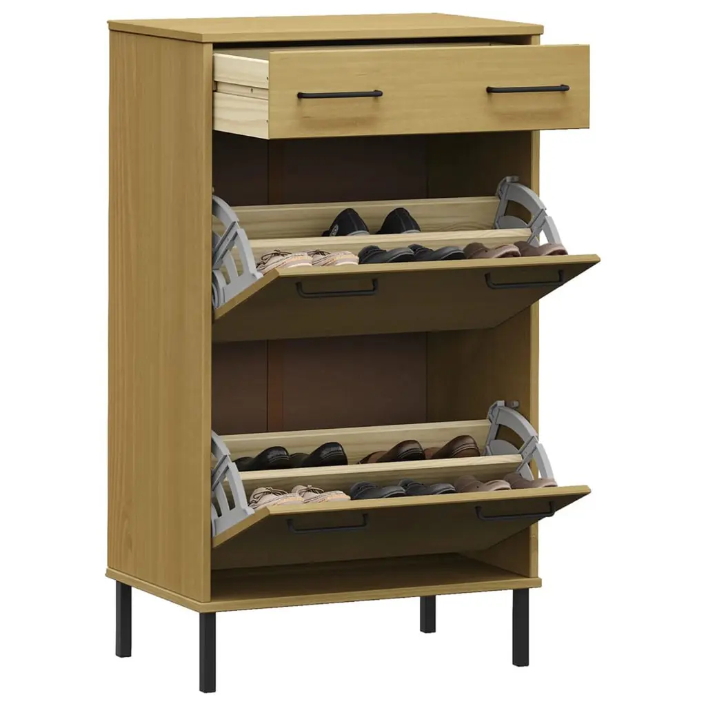 Vidaxl Shoe Rack Brown Solid Pine Wood, Metal Large Shoe Rack