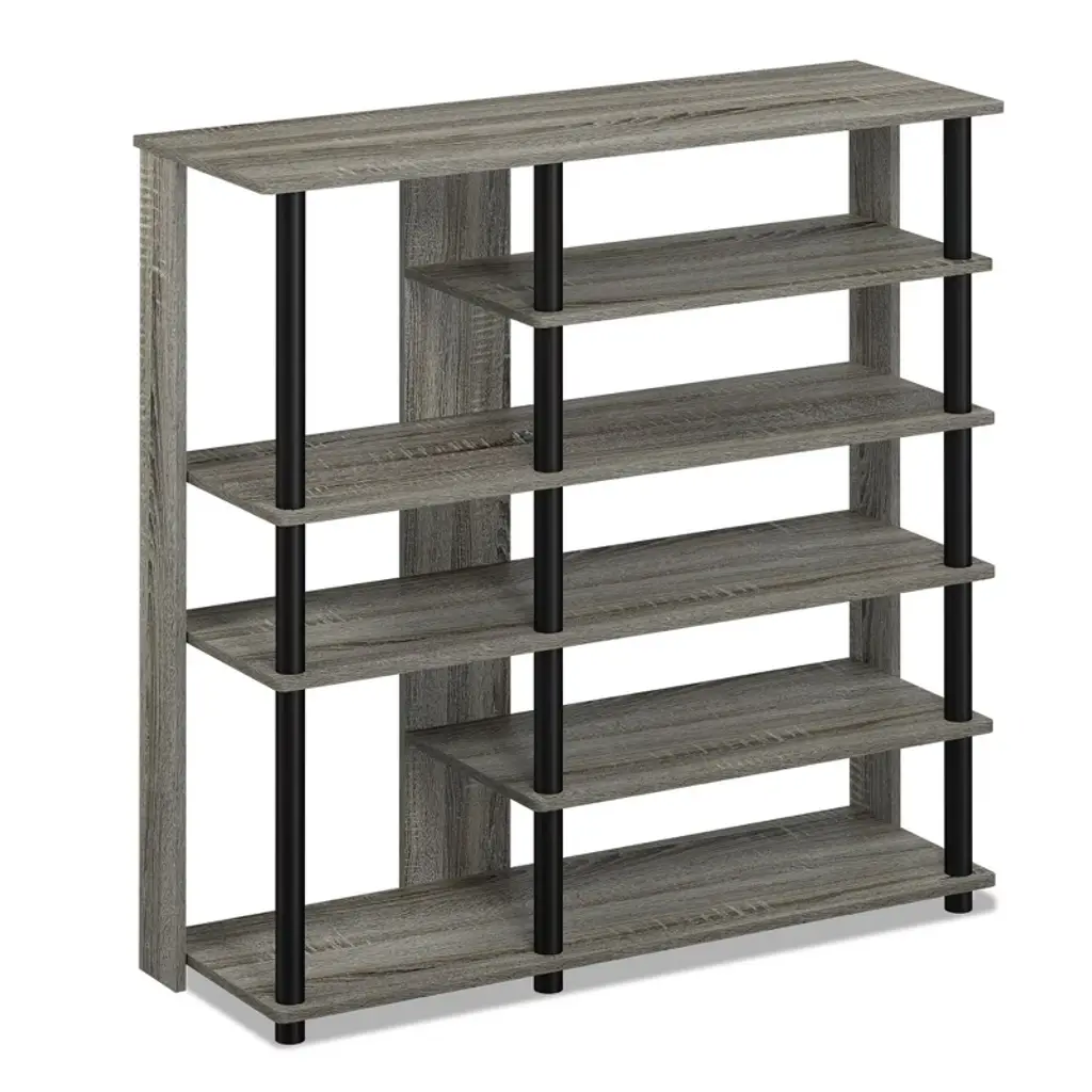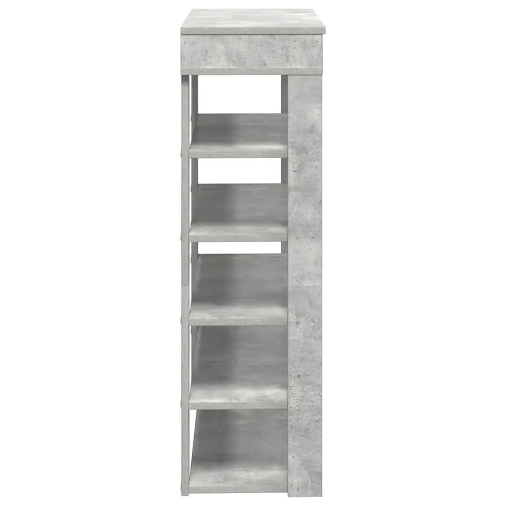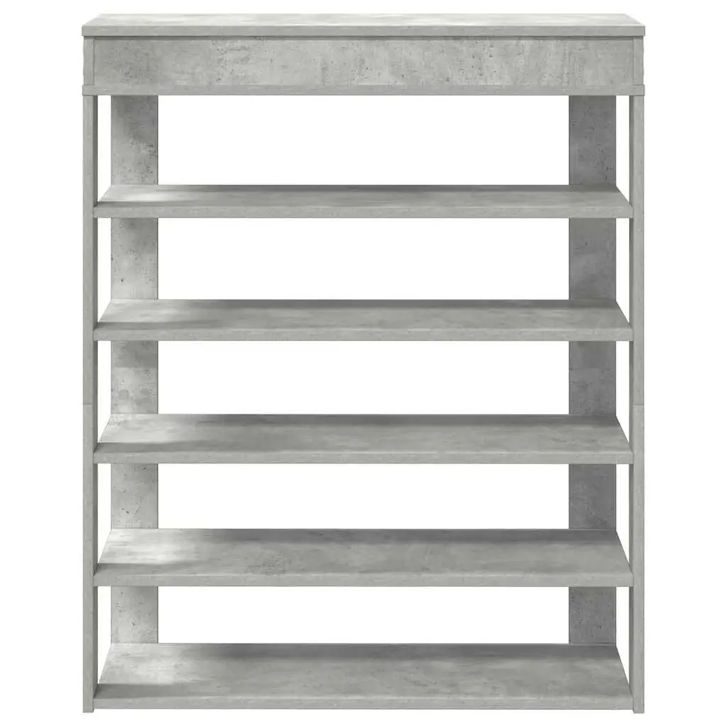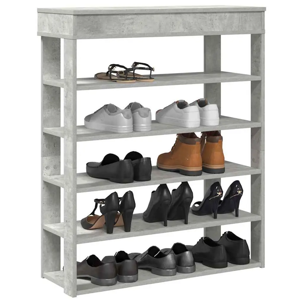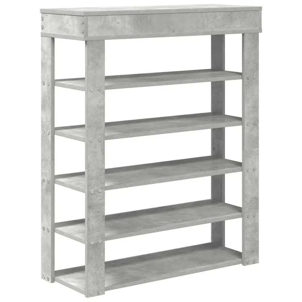 This slim shoe rack is perfect for sorting out your footwear while keeping your entryway neat. Its modern concrete gray finish and sleek design bring a touch of class to any hallway or mudroom, making it ideal for both modern and classic homes. The ample storage of five shelves lets you keep multiple pairs of shoes handy and organized.The sleek design makes it a lovely touch in any hallway, boosting both practicality and the overall look of your space.Made from tough engineered wood, this rack is built to last and holds up to daily use while looking great.Its slim profile slides into tight spots, maximizing floor space without compromising on storage.Easy to clean, just wipe it down with a damp cloth to keep it looking fresh—a must for busy lives.