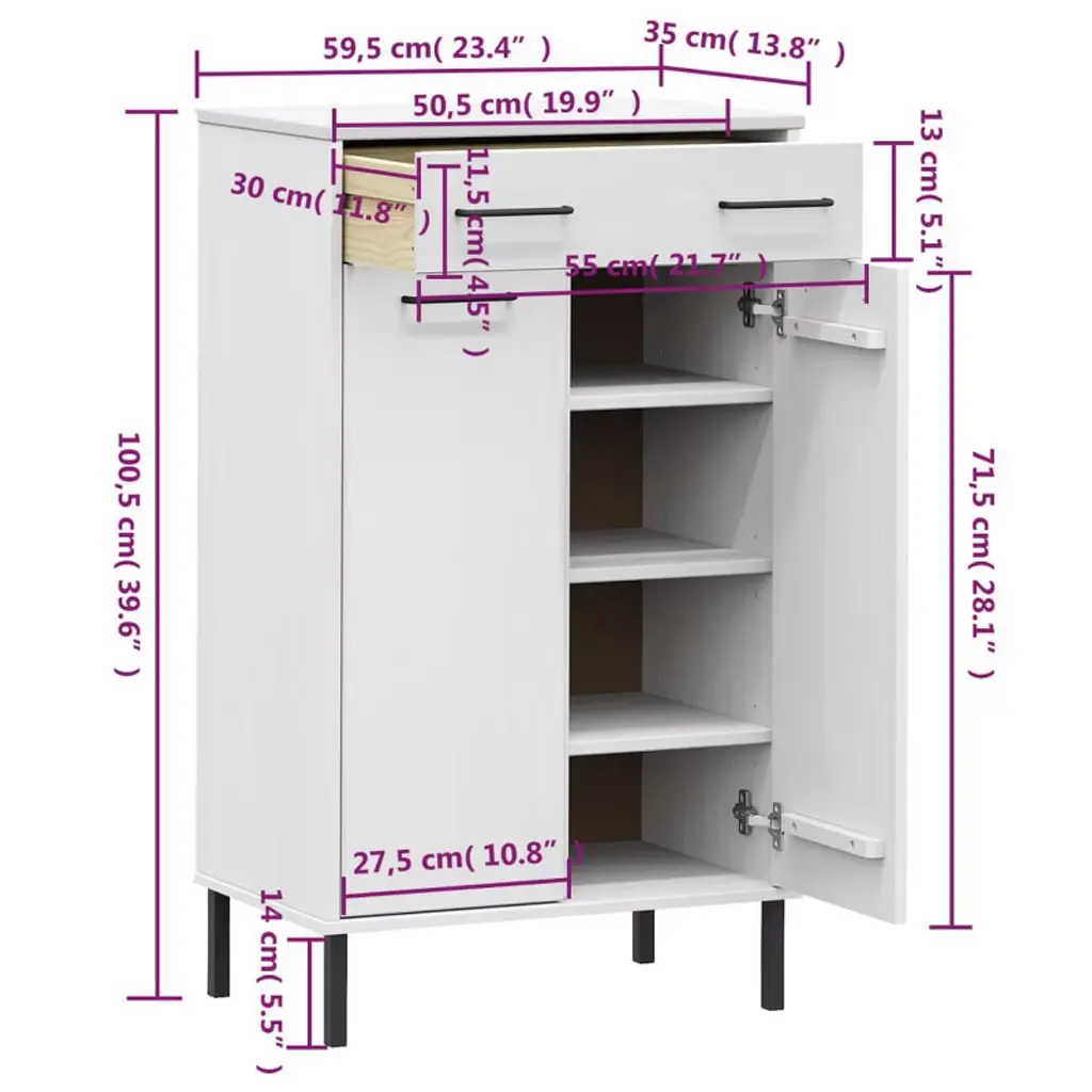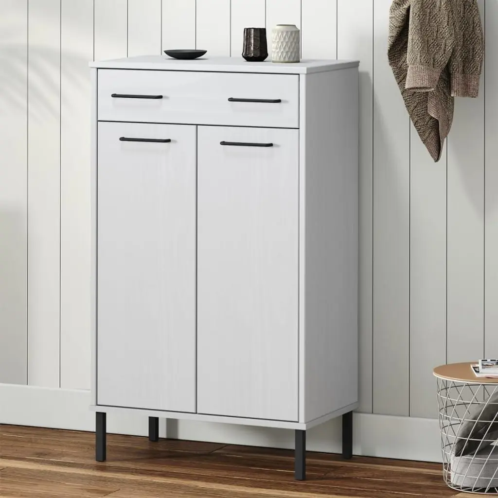Vidaxl Shoe Rack Solid Pine Wood And Metal, Rectangular - White