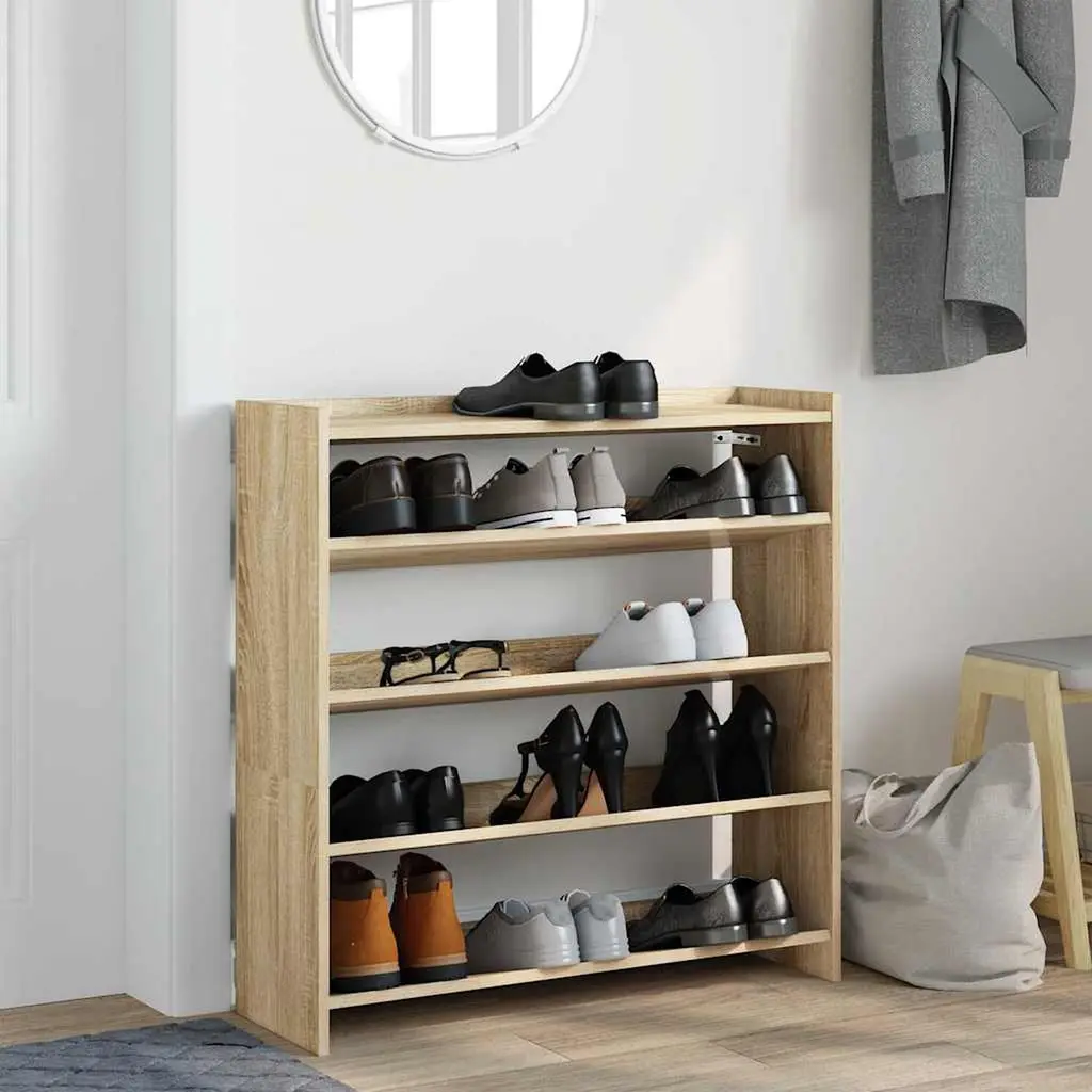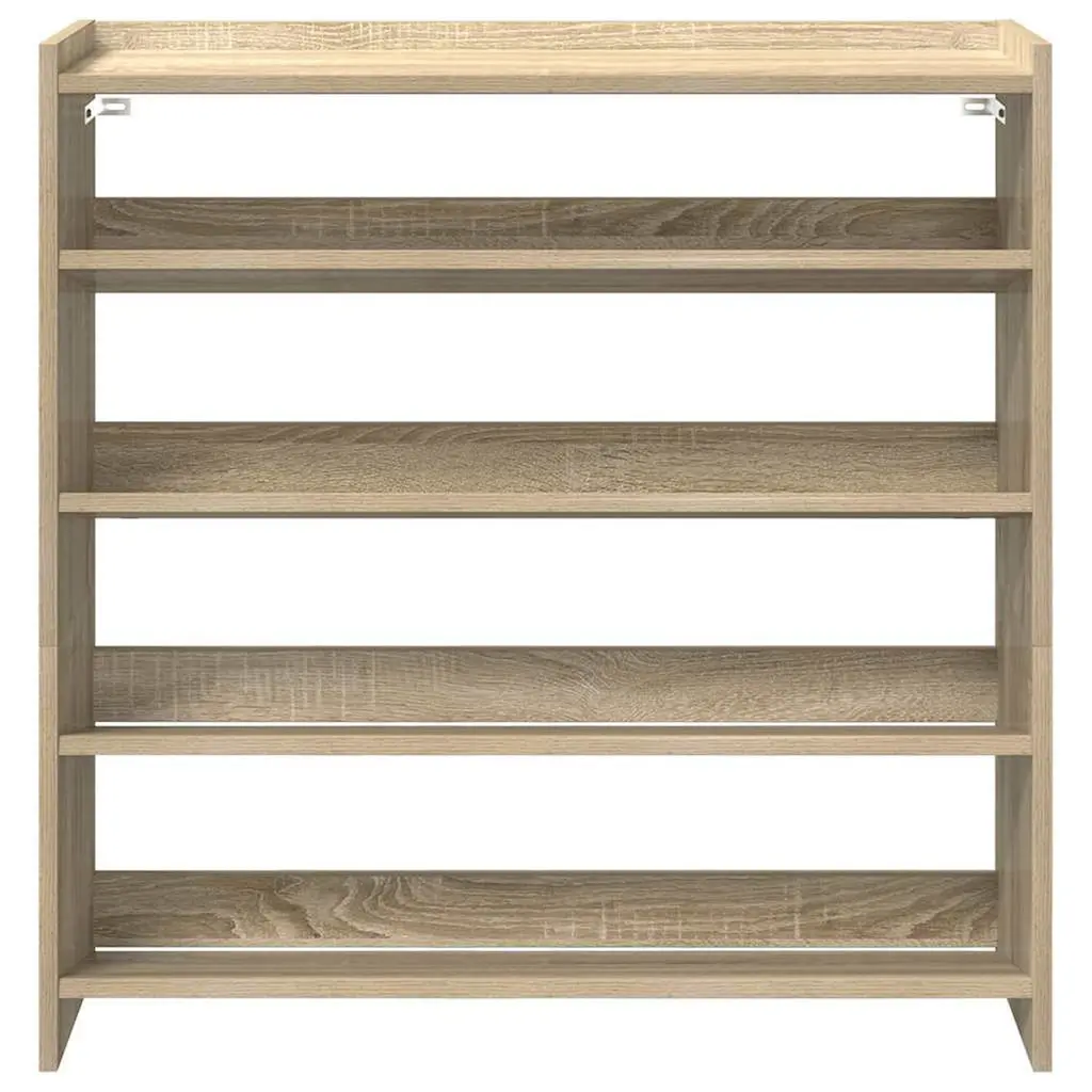 This shoe rack is the perfect mix of practicality and modern style, great for keeping footwear in tight entryways or large mudrooms. The Sonoma Oak finish gives it a warm, inviting feel while blending in with different home decor, ensuring your shoes look neat and are easy to grab. Ample Storage Capacity: The shoe rack has five shelves that offer generous space for organizing shoes, making sure your footwear is well kept. Keeping them organized avoids clutter and helps maintain their condition.Slim and Compact Design: Perfect for tighter spaces, this shoe rack’s narrow profile fits snugly in entryways or corridors, blending practicality with style. The smart look doesn’t skimp on function, making it a clever choice for space-challenged homes.Durable Engineered Wood Construction: Made from quality engineered wood, this shoe rack is built to last, supporting up to 132.3 lbs. Its solid design means it can take the daily grind and not sag or fail.Easy Maintenance: The smooth surface makes it low upkeep, needing just a quick wipe down with a dry cloth. This no-fuss feature saves you time and keeps your storage looking tidy.Versatile Use: Made for indoor spaces, this shoe rack is great for not just shoes but can also stash bags or other small items, catering to your changing storage needs.