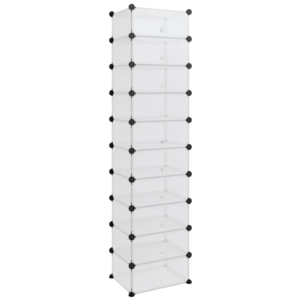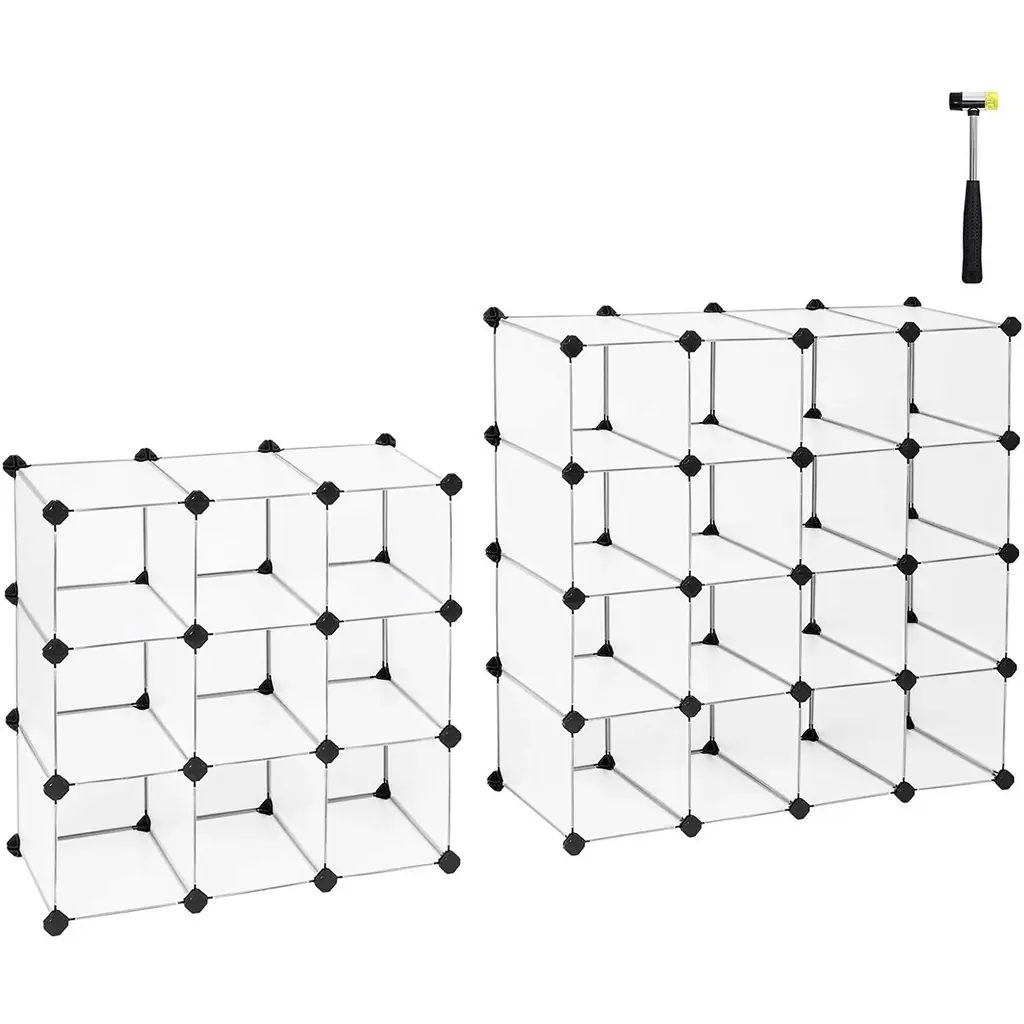 Modern Modular Shoe Storage Keep your footwear organized and your entryway clutter-free with this transparent modular shoe rack. Its minimalist design and clear panels make it a stylish addition to any hallway, bedroom, or utility room. The rack is available in multiple sizes and colors, including Black and Transparent, so you can choose the perfect fit for your space. Key Features • Modular design lets you customize the layout to fit your space • Stackable units allow for vertical expansion as your shoe collection grows • Transparent polypropylene panels with sturdy steel frame for durability • Each cube holds up to 22 lbs, suitable for sneakers, heels, and more • Easy to clean smooth surfaces keep your rack looking fresh Sizes and Options • Available Sizes: 37.2" x 14.4" x 41.7", 37" x 14.6" x 49.2", 17.3" x 12.6" x 68.5", 17.3" x 12.4" x 60.4" • Available Colors: Black, Transparent Product Details • Material: Waterproof polypropylene (PP) and steel • Finish: Matte • Indoor use only • Assembly required (includes wood hammer and instructions) • Maximum weight per cube: 22 lbs • Example capacity: Up to 16 pairs of shoes (varies by size) What's Included • Modular panels, doors, connectors, and hardware for assembly • Instruction manual Why Choose This Shoe Rack? • Flexible storage for changing needs • Durable and moisture-resistant construction • Sleek, modern look fits any décor • Keeps shoes visible and accessible SKU: 340561 / 340562 / 340564 (varies by size and color)