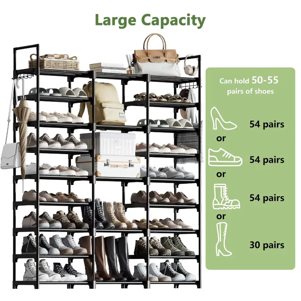 Wowlive 9-tier Metal Shoe Rack, Tall Shoe Storage Organizer For Entryway,black