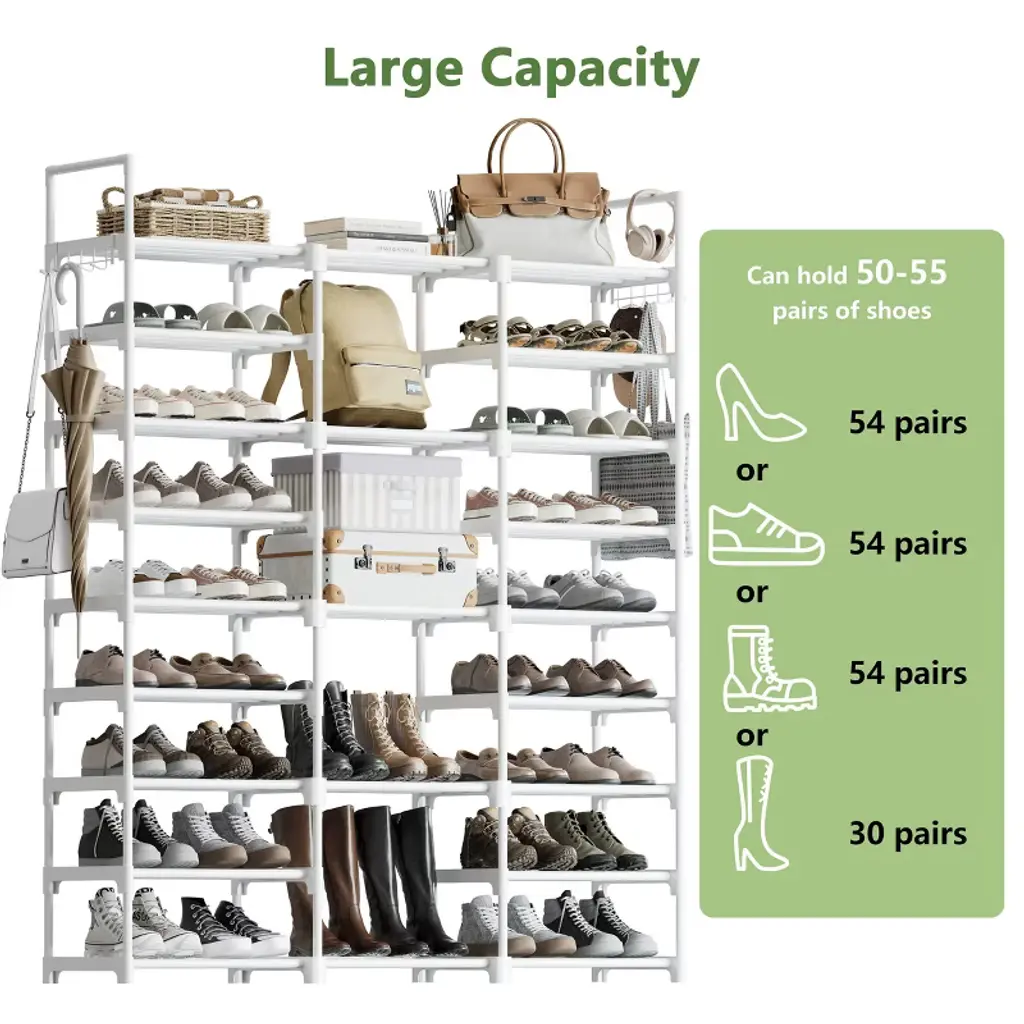 Wowlive 9-tier Metal Shoe Rack, Tall Shoe Storage Organizer For Entryway,white