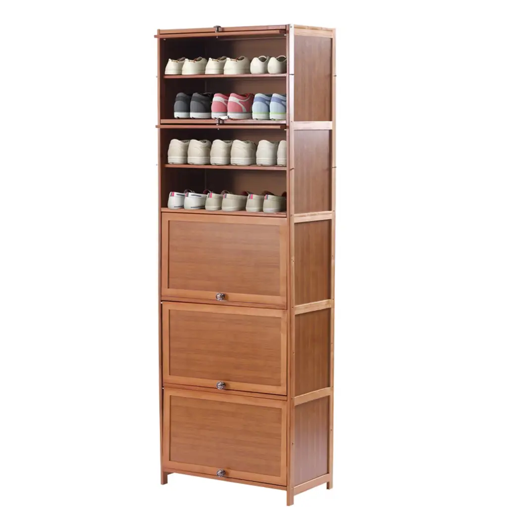 Yiyibyus 10 Tier Freestanding Shoe Rack Bamboo Shoe Cabinet With Doors