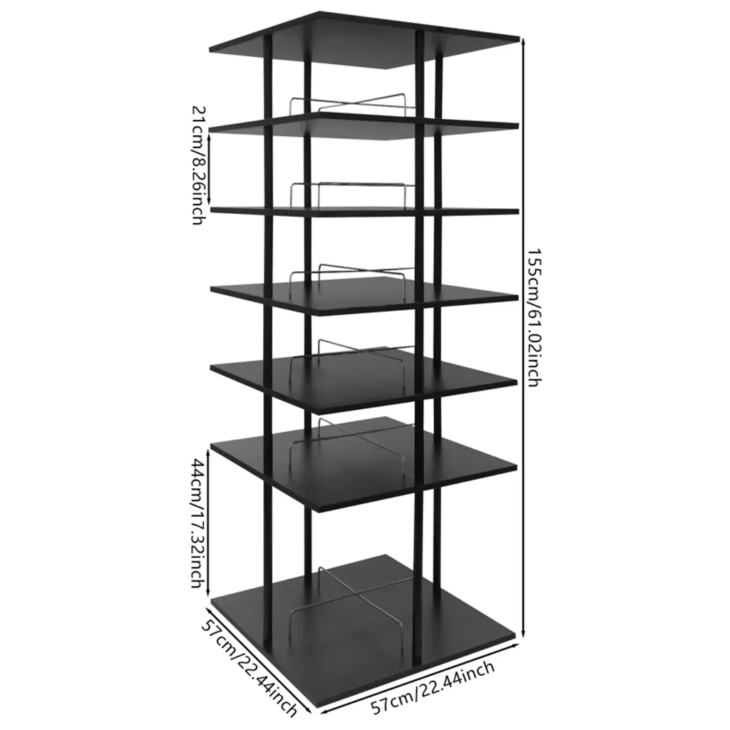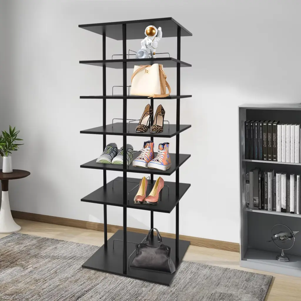 This 6-tier shoe rack is a stylish and practical storage solution. Crafted from durable, eco-friendly paintless board and metal with a sleek black/white finish, it’s built to last. The spacious design holds up to 4 pairs of shoes per tier, with varied spacing (8.26in and 17.32in) to accommodate different footwear, plus a 360° rotating base for easy access. It boasts a strong load capacity (up to 43 lbs), open design for ventilation, and a stable square base, making it perfect for homes or stores. Its compact footprint saves space while adding a touch of modern elegance. Specifications Color: Black/White Material: Paintless Board, Metal Process: Spray Coating, Baking Paint Style: Modern Shape: Rectangular Assembly Required: Yes Mount Type: Floor Mount Feature: 360° Rotatable Product Care Instructions: Wipe with a Soft Cloth Number of Tiers: 6 Number of Shoes Applicable Each Tier: 4 Pairs(For Reference) Total Load-bearing Capacity: About 19.5kg/42.99lbs Tier Spacing: 21cm/8.26in, 44cm/17.32in Product Size: 57*57*155cm/22.44*22.44*61.02in