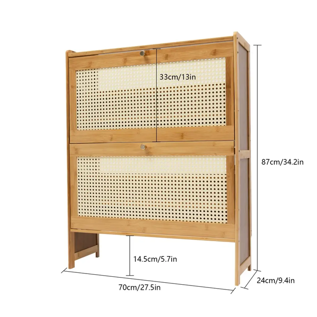 Yiyibyus Natural Rattan Shoe Cabinet Free Standing Shoe Racks With 2 Flip Doors