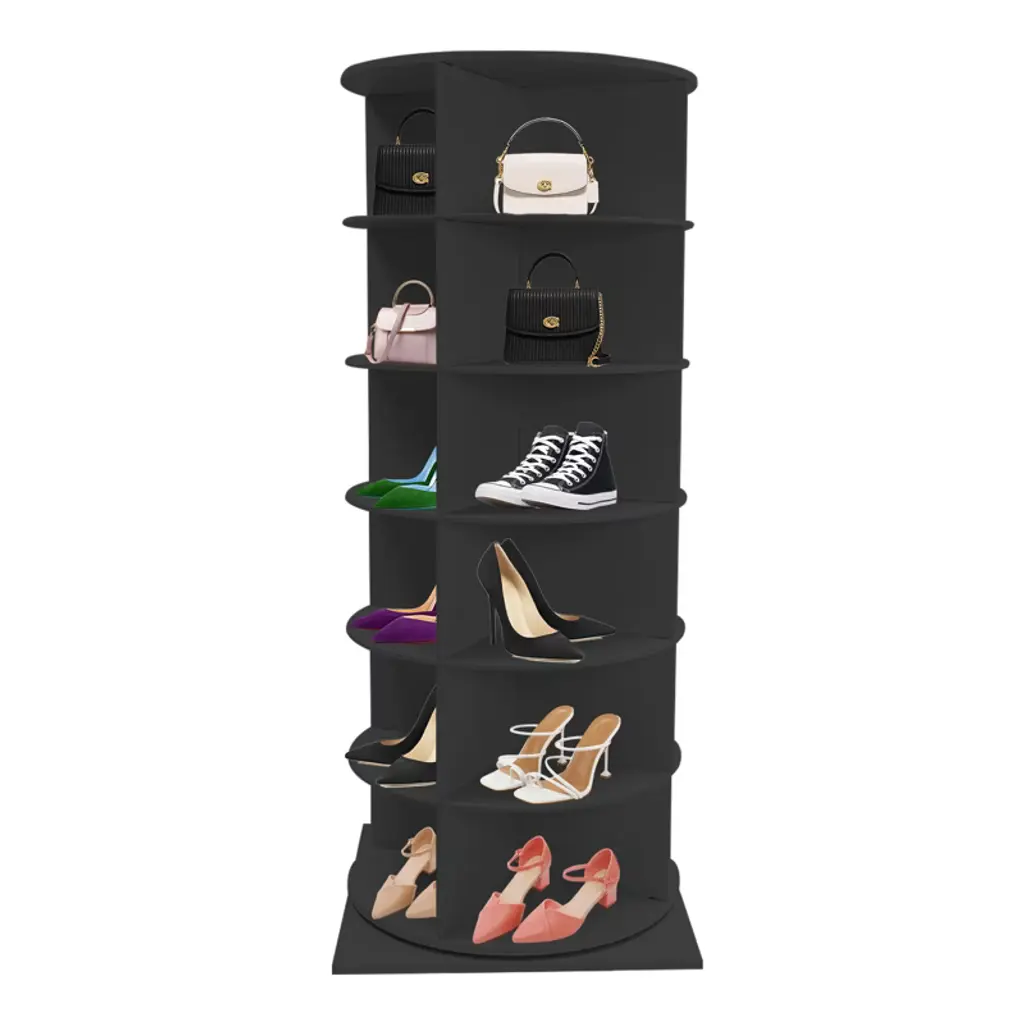 Made of non-toxic, odorless foamed PVC and eco-board, this stylish 7-tier shoe rack is durable, space-saving, and can store up to 28 pairs of shoes. Its 360¡« swivel design allows for easy access and its sturdy construction can hold up to 77.16 pounds. It's easy to assemble and simple to clean, and its fresh pastel look and modern design blend seamlessly with any home decor.