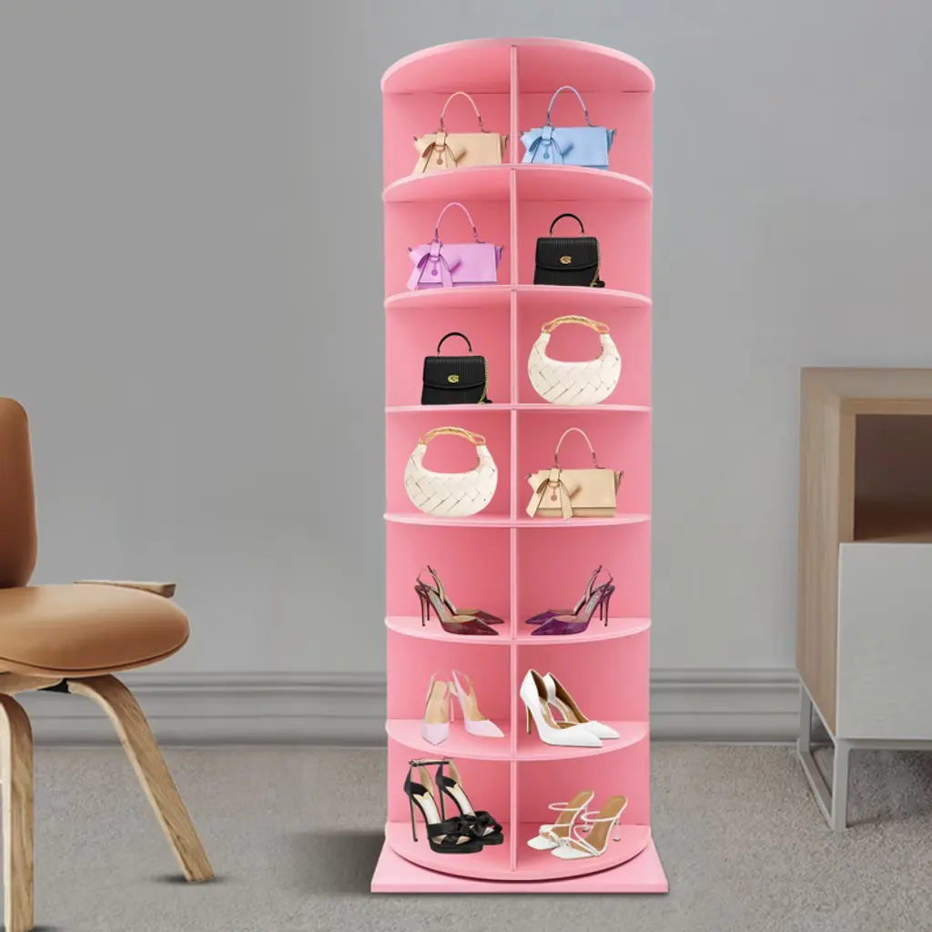 Yiyibyus Pink Rotating Free Standing Shoe Rack Shoe Organizer