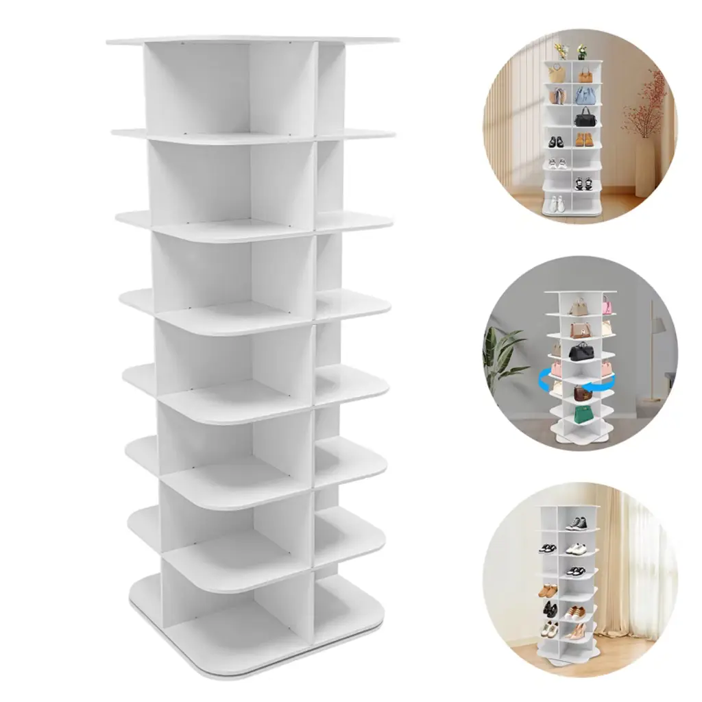 Yiyibyus Square Shoe Storage Organizer, Rotating Shoe Rack Tower, White