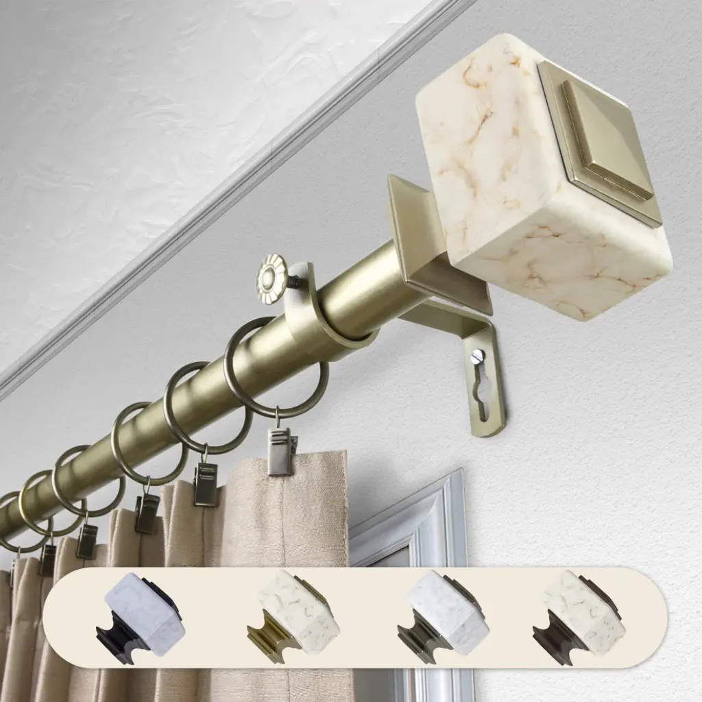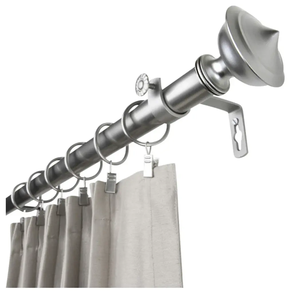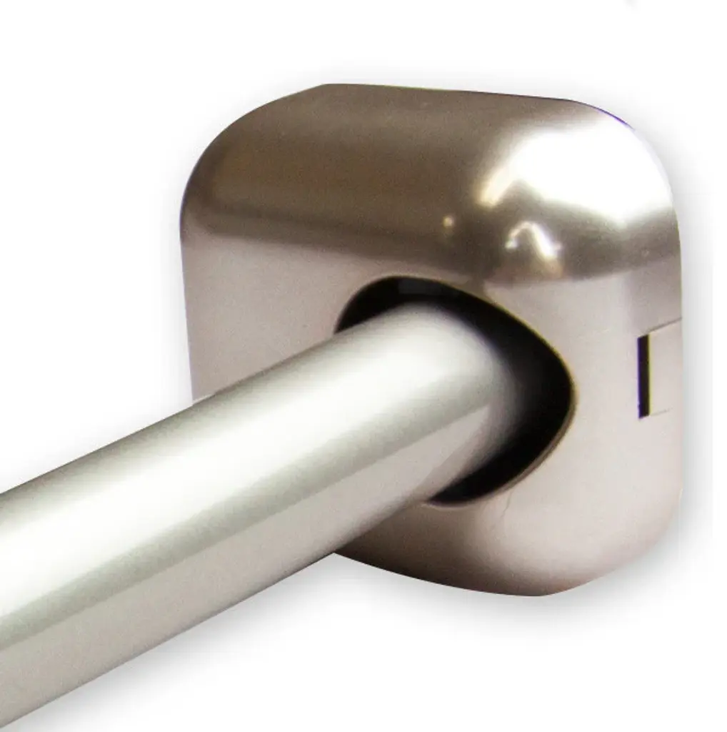 Our new 1" diameter adjustable shower curtain rod adds style and felxibility to your bathroom. Made of galvanized steel to prevent rust, this curved rod gives you up to 10.5" of space and allows for 45 degrees of rotation. Adjustable rod can extend from 41-72" and mounts into plastic mounting brackets.