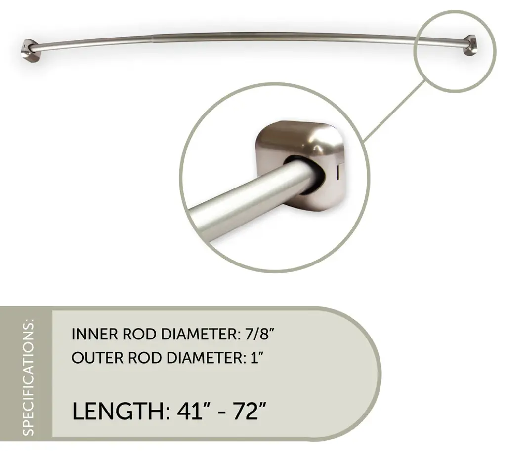 1" Shower Curtain Rod, Satin Nickel, 41"-72"