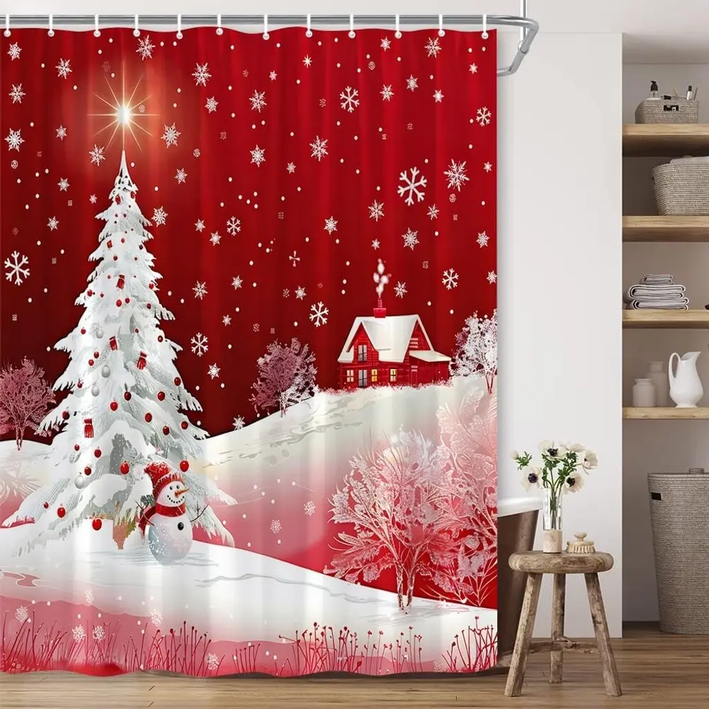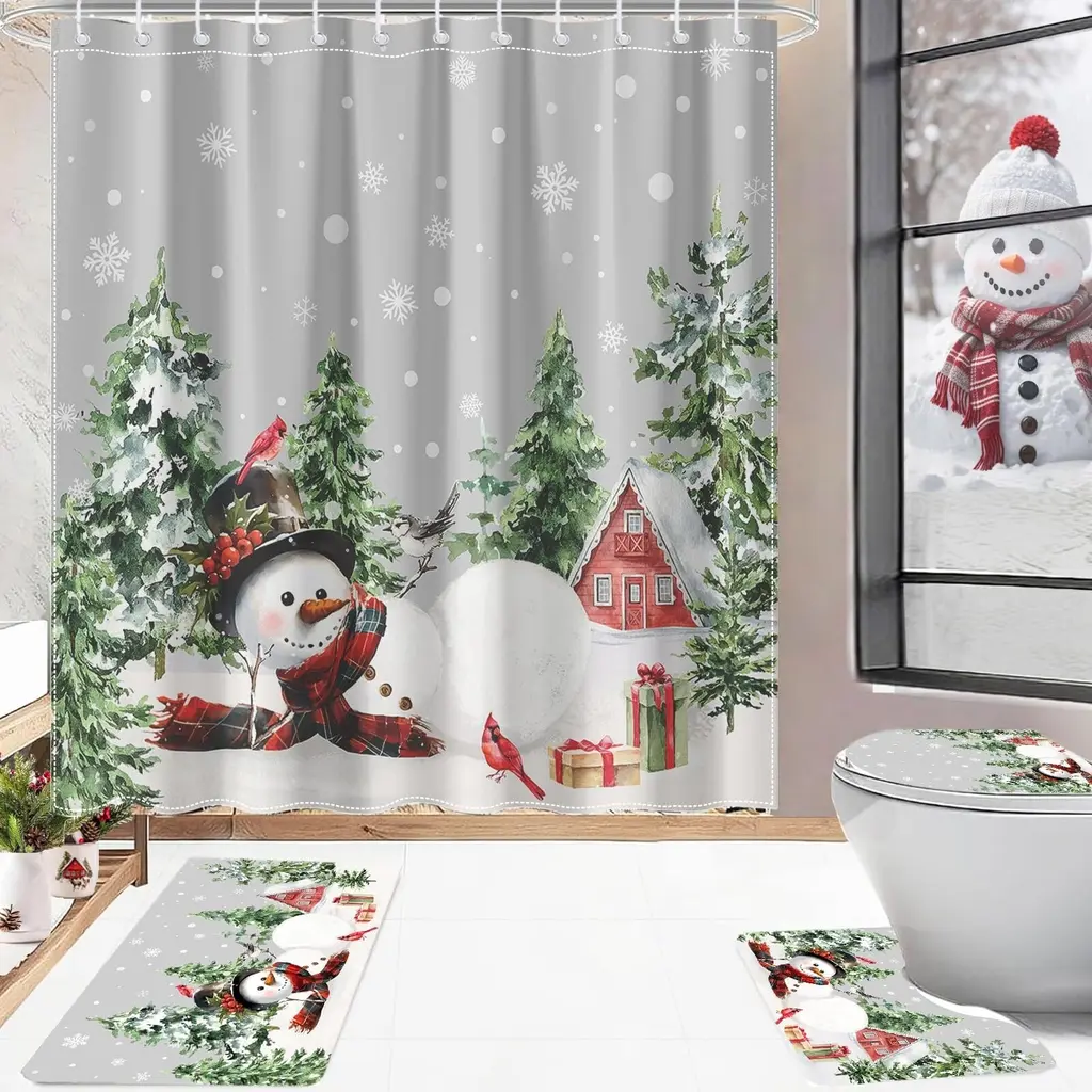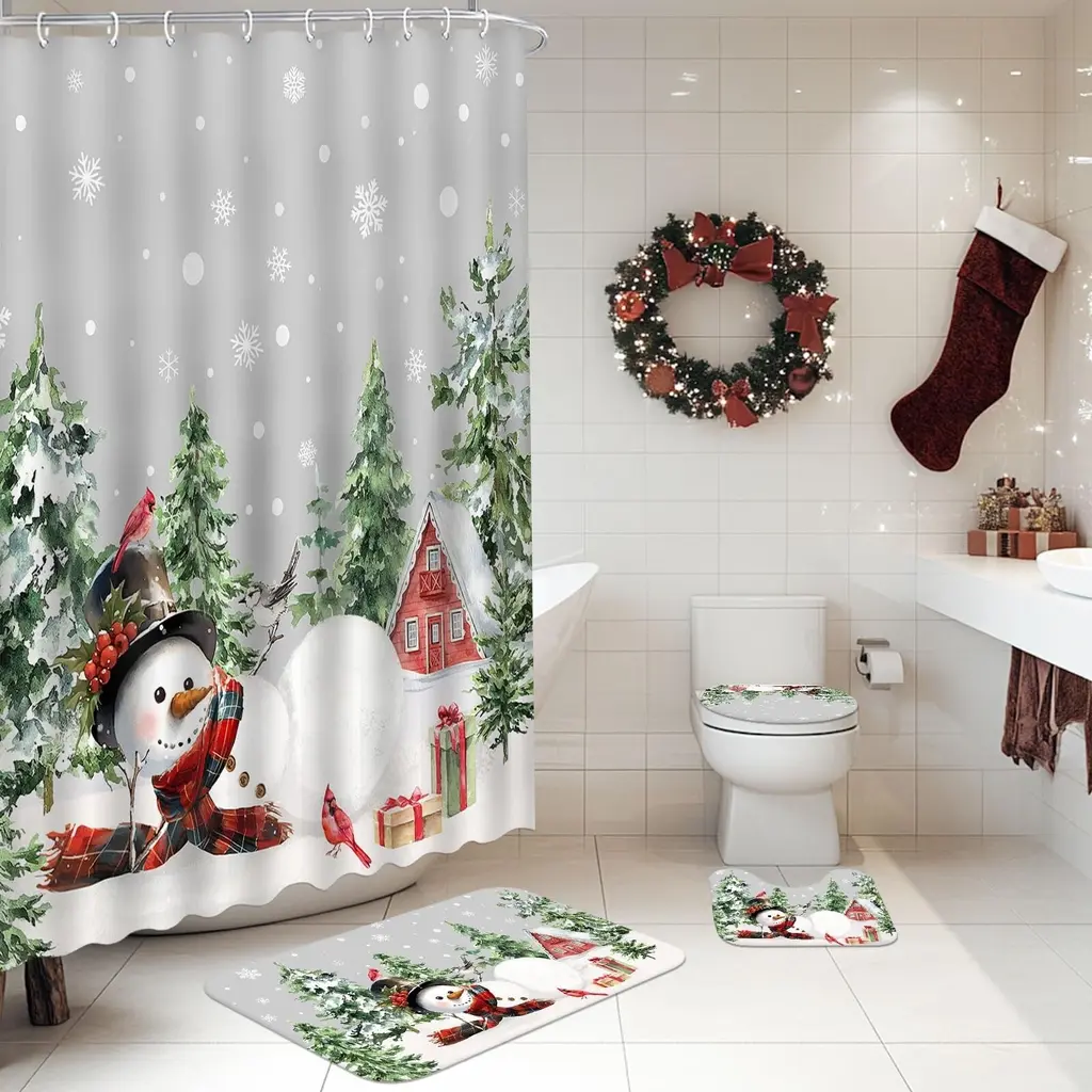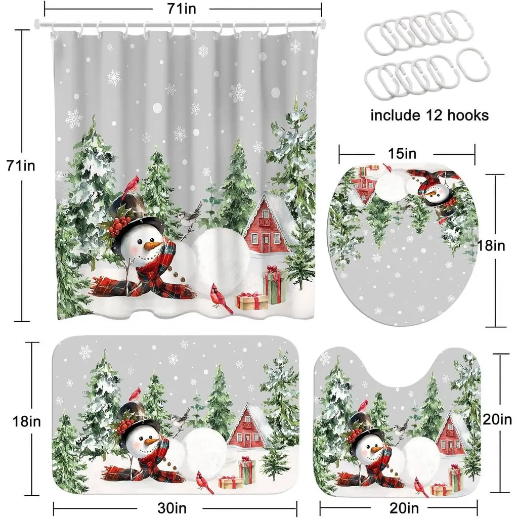 4Pcs Christmas Shower Curtain Set - Winter Pine Tree Decor, 70.8x70.8 - Multicolor