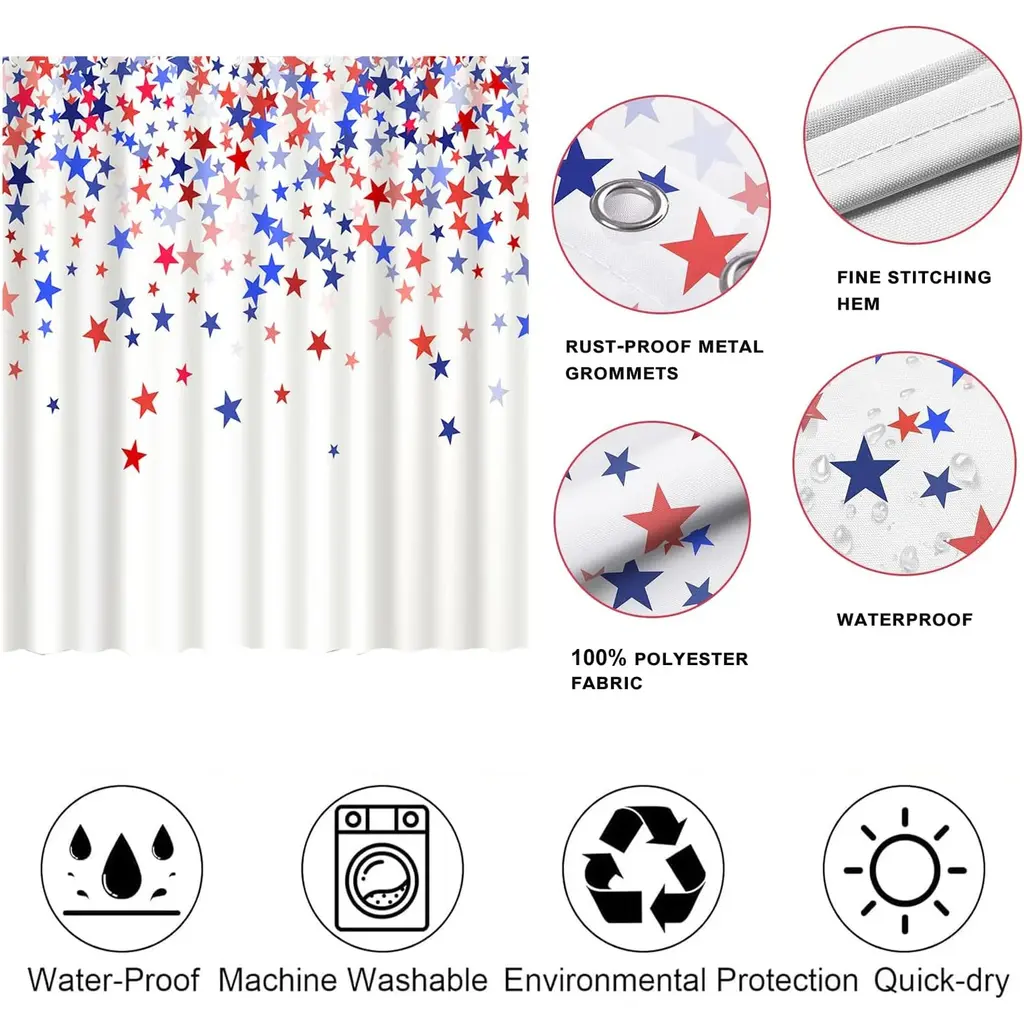 Celebrate Independence Day in style with our 4th of July Shower Curtain, measuring 72"x72". Embrace the patriotic spirit with vibrant colors and festive designs, perfect for adding a touch of Americana to your bathroom decor. Crafted with meticulous attention to detail, this curtain sets the stage for a joyful celebration of freedom and unity. Elevate your bathing experience with our 4th of July Shower Curtain, where each shower becomes a spirited tribute to the land of the free and the home of the brave.