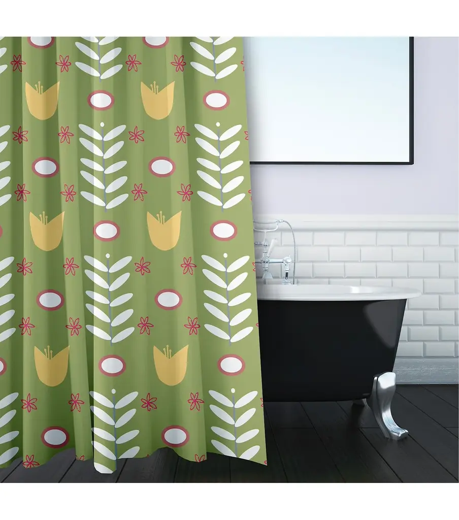 Beautify your home with a Simply Daisy 70" x 73" Apple Green Spring Garden Shower Curtain from our Flower Power Collection.This durable and decorative polyester fabric shower curtain has a single sided design and a buttonhole top to easily refresh your bath for each season. It is made of 100% polyester that is quick drying. When it needs to be washed, just toss it into your washing machine, and then tumble dry. Everyone will enjoy the color brought to your bath space by this decorative shower curtain! With floral designs and partner patterns, your home decor will be sunny and vibrant.