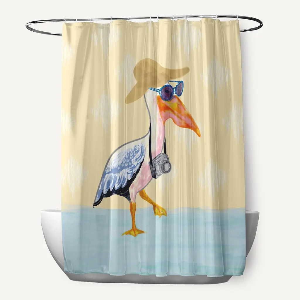 With the combination of sunny colors and beach style, you will love the Blue Bernadette shower curtain from our Beach Vacation Collection. Your bath décor will be enlivened with this shower curtain's coastal vibe! This and all designs from our Beach Vacation Collection will bring waves of joy to your home decor.Features:Durable Polyester FabricQuick DryingMachine Washable71" x 74"12 Button Holes for hook placementPattern: BirdStyle: Nautical & CoastalColor Choices: Blue, Yellow
