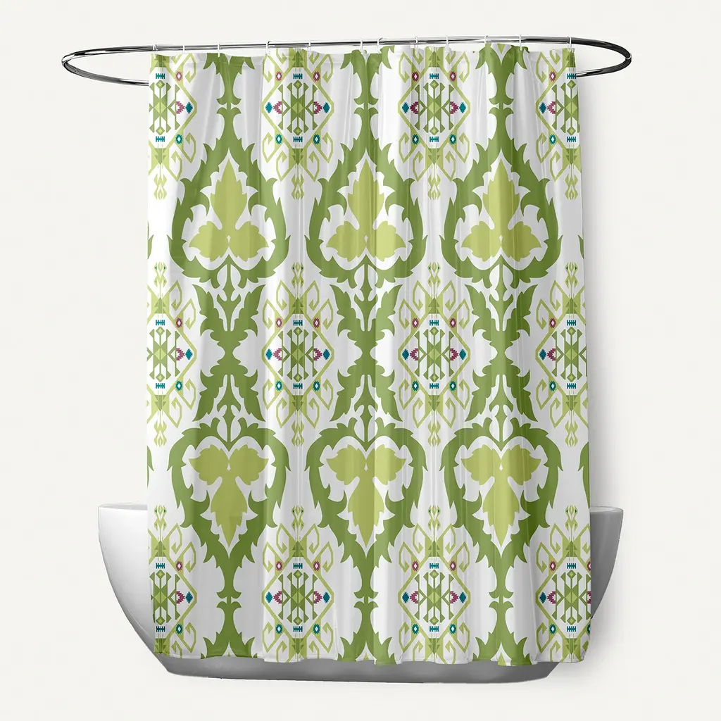 71 X 74-Inch Bombay Geometric Print Shower Curtain - Green