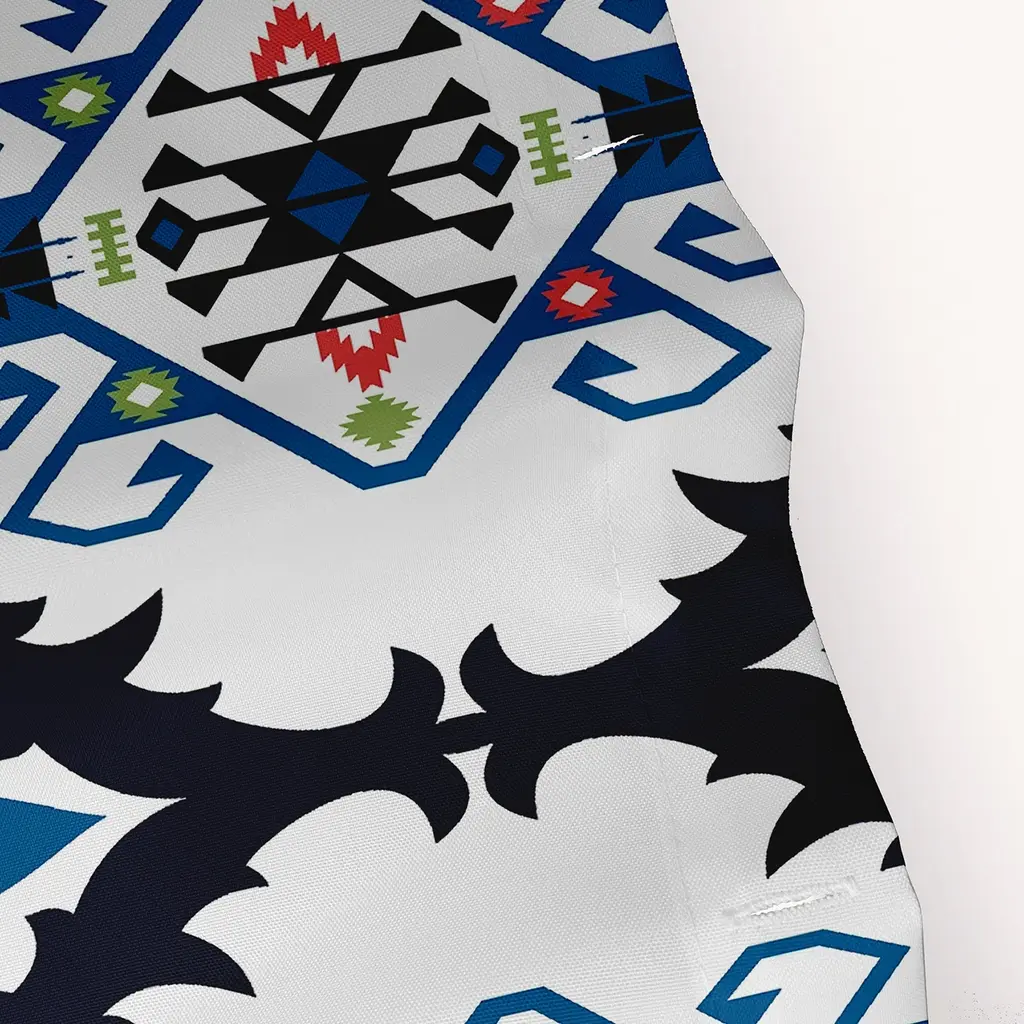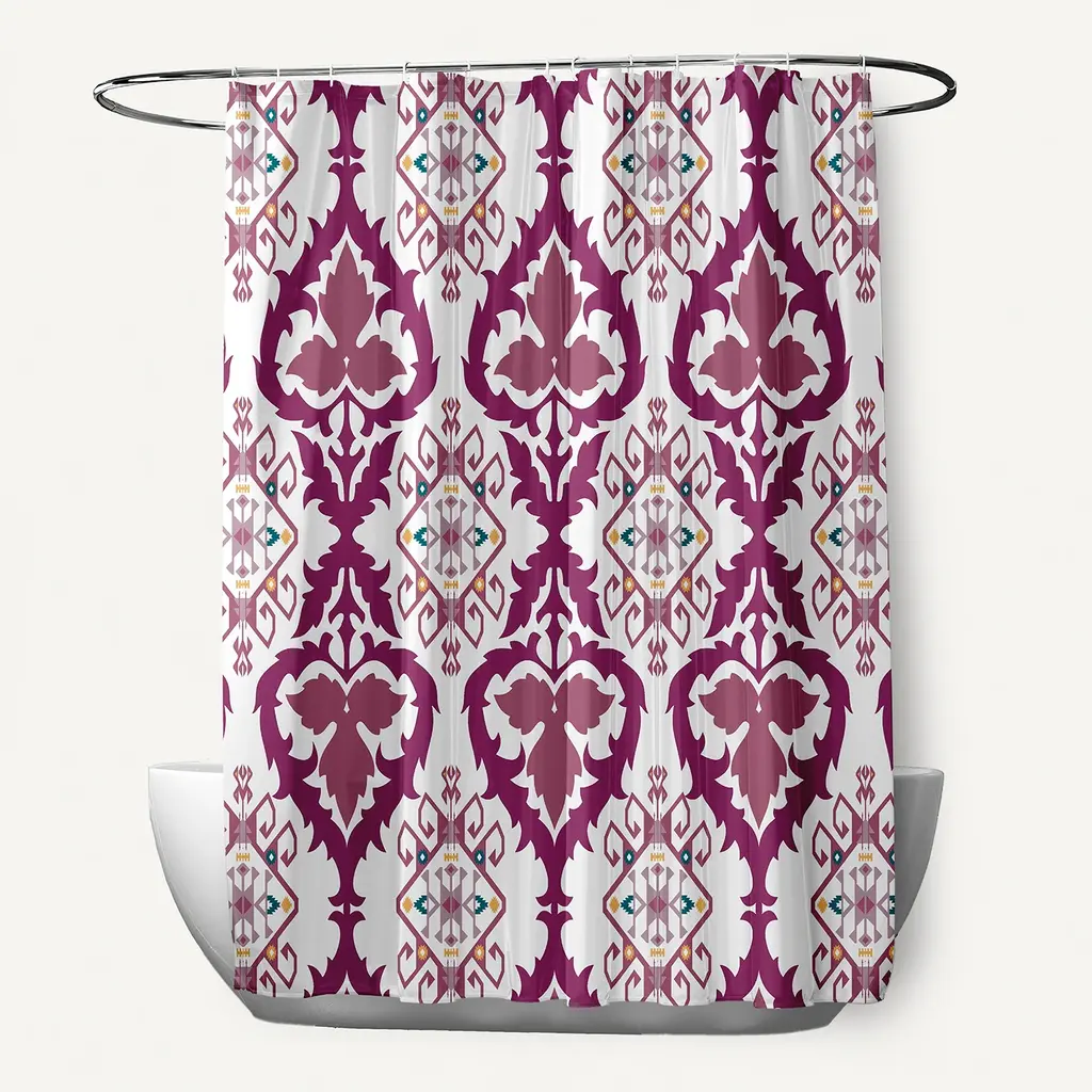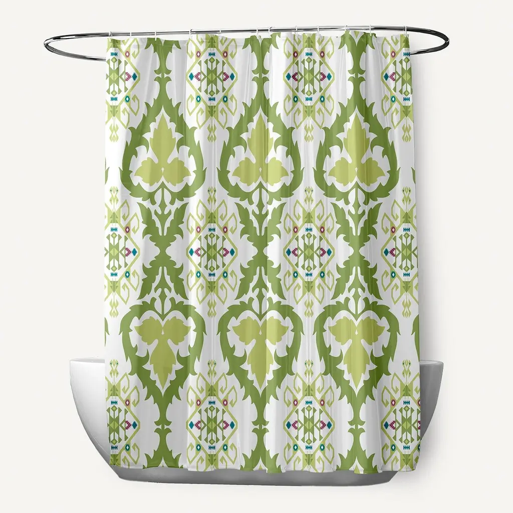 Create a colorful and radiant vibe around your home with the Navy Bombay shower curtain from our Happy Hippy Collection. All the designs in this collection will make you smile as you bask in the color brought to your home. Features:Durable Polyester FabricQuick DryingMachine Washable71" x 74"12 Button Holes for hook placementPattern: IkatStyle: French CountryColor Choices: Navy, Green, Orange, Purple