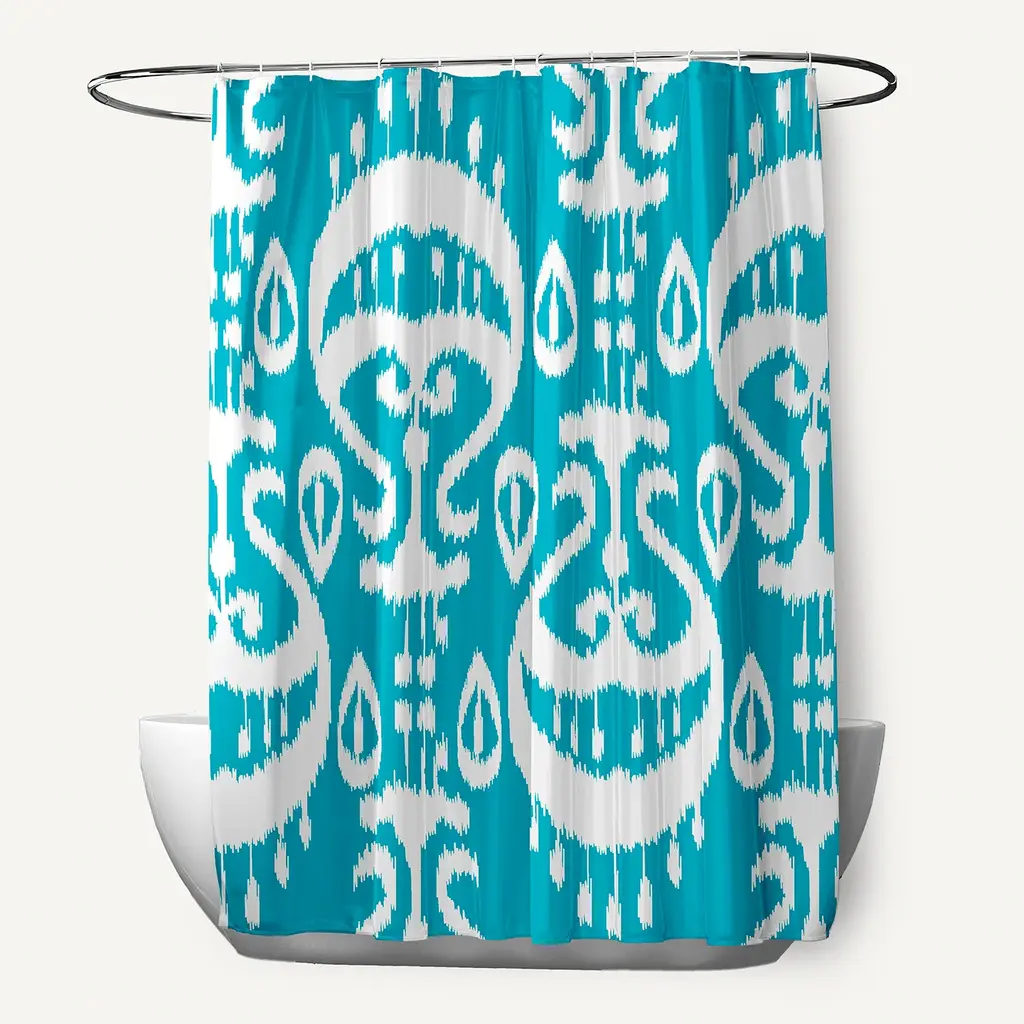 71 X 74-Inch Ikat Geometric Print Shower Curtain - Turquoise