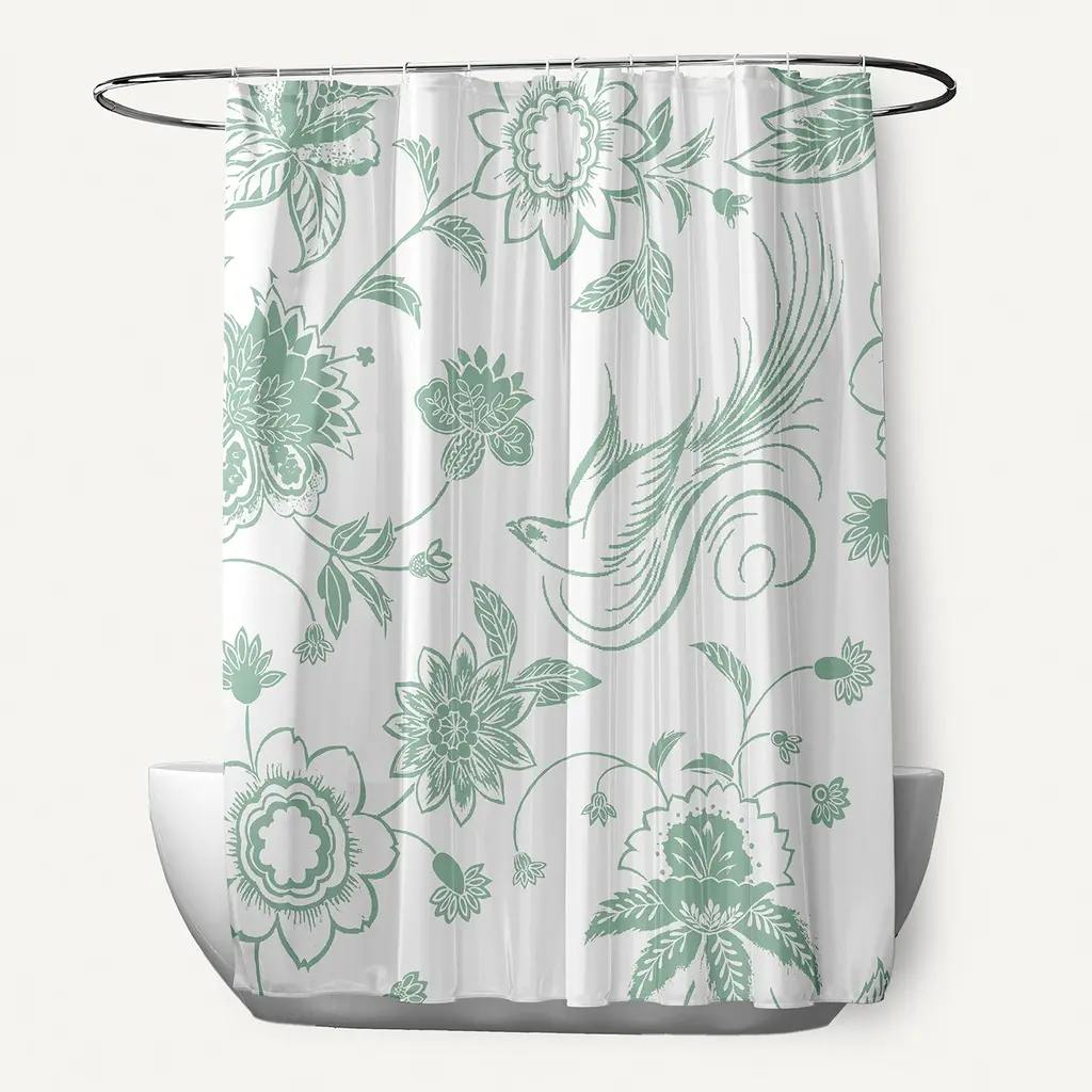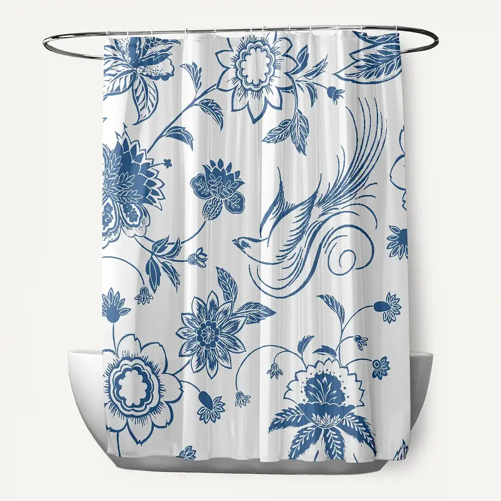 Add a floral touch to enhance your home decor with a Blue Traditional Bird Floral shower curtain from our Botanical Blooms Collection. Everyone will enjoy the welcoming and floral feel that this shower curtain brings to any bath space! Your home decor is guaranteed to bloom with the garden beauty found in this collection.Features:Durable Polyester FabricQuick DryingMachine Washable71" x 74"12 Button Holes for hook placementPattern: FloralStyle: French CountryColor Choices: Blue, Green, Grey, Pink, Yellow
