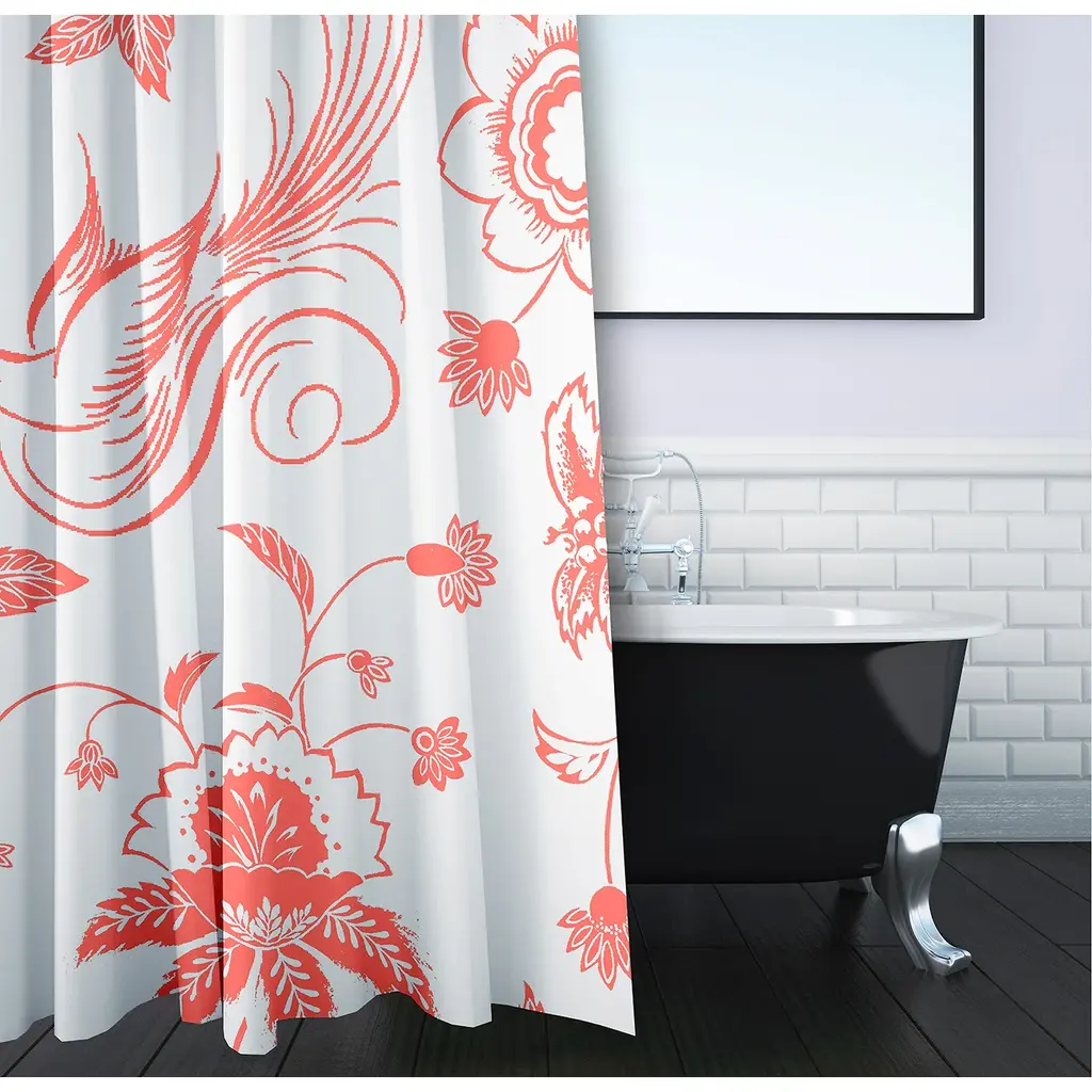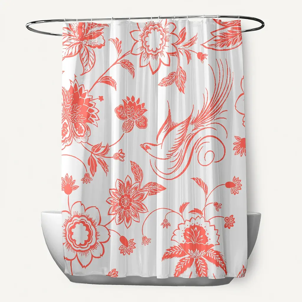 71 X 74-Inch Traditional Bird Floral Print Shower Curtain - Pink