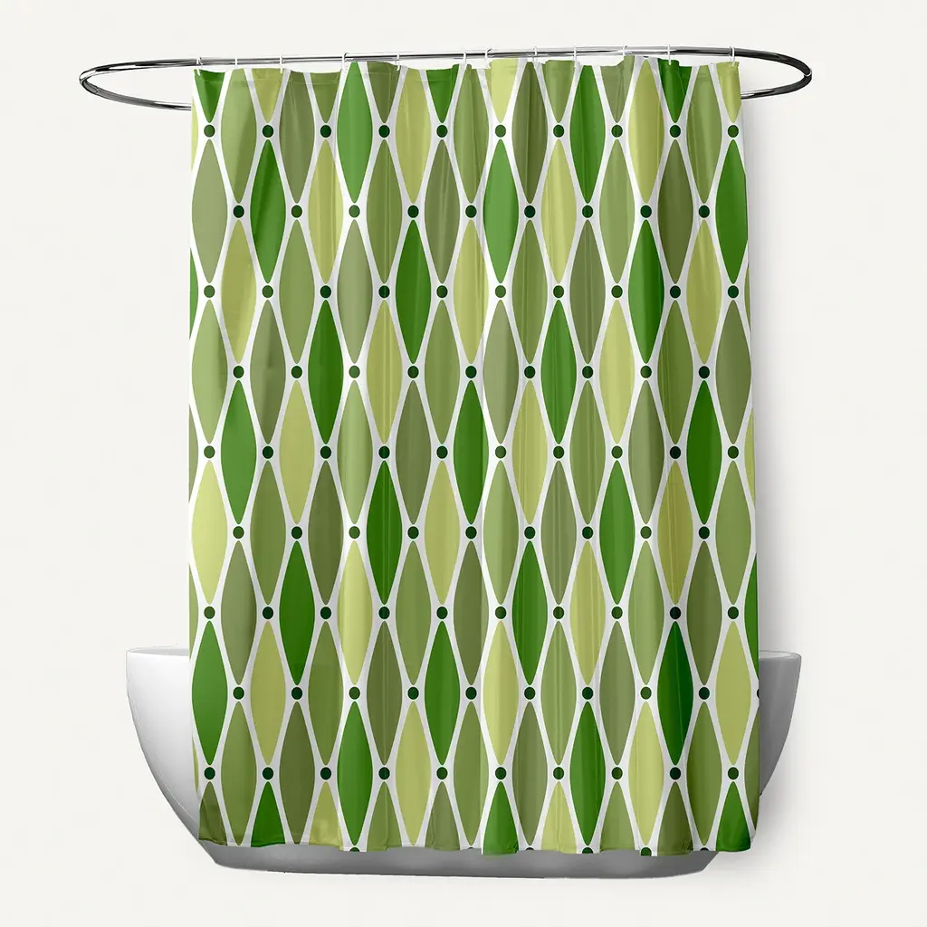 71 X 74-Inch Wavy Geometric Print Shower Curtain - Green