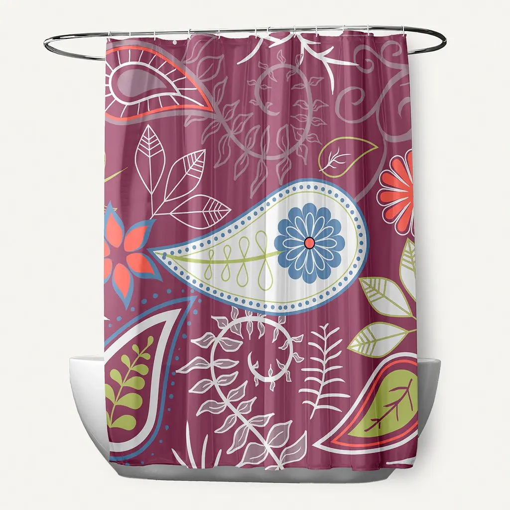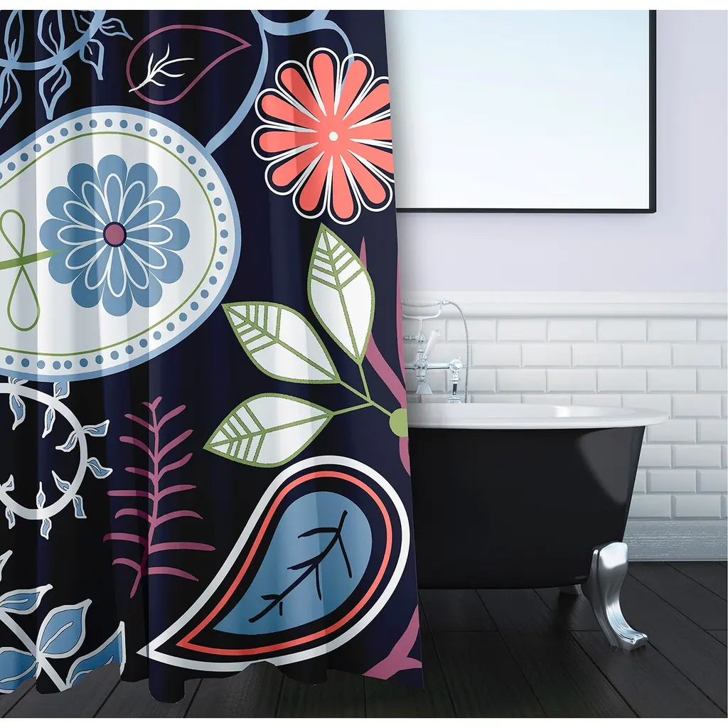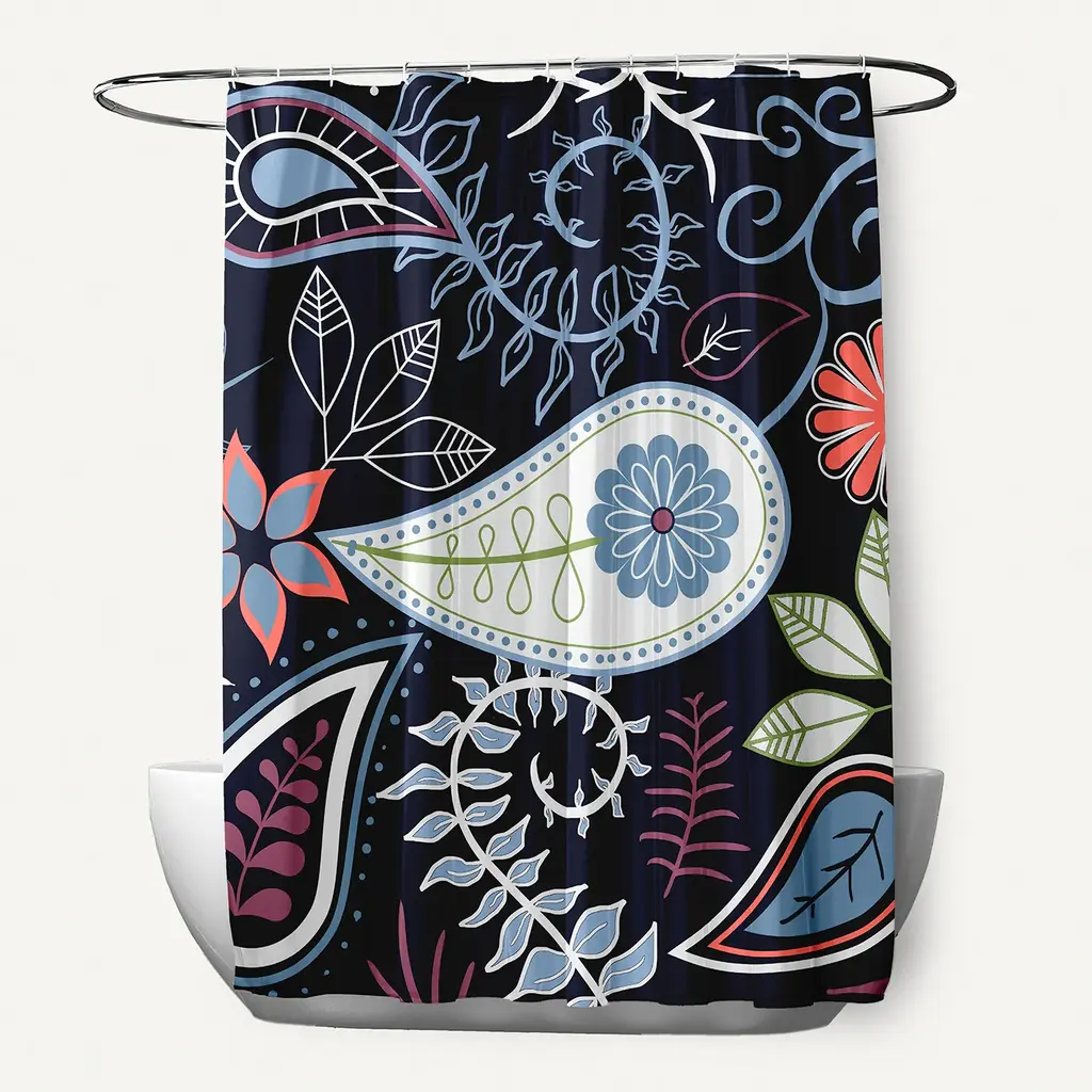 Add a floral touch to enhance your home decor with a Navy Paisley Floral shower curtain from our Botanical Blooms Collection. Everyone will enjoy the welcoming and floral feel that this shower curtain brings to any bath space! Your home decor is guaranteed to bloom with the garden beauty found in this collection.Features:Durable Polyester FabricQuick DryingMachine Washable71" x 74"12 Button Holes for hook placementPattern: PaisleyStyle: Modern & ContemporaryColor Choices: Navy, Teal, Grey, Purple