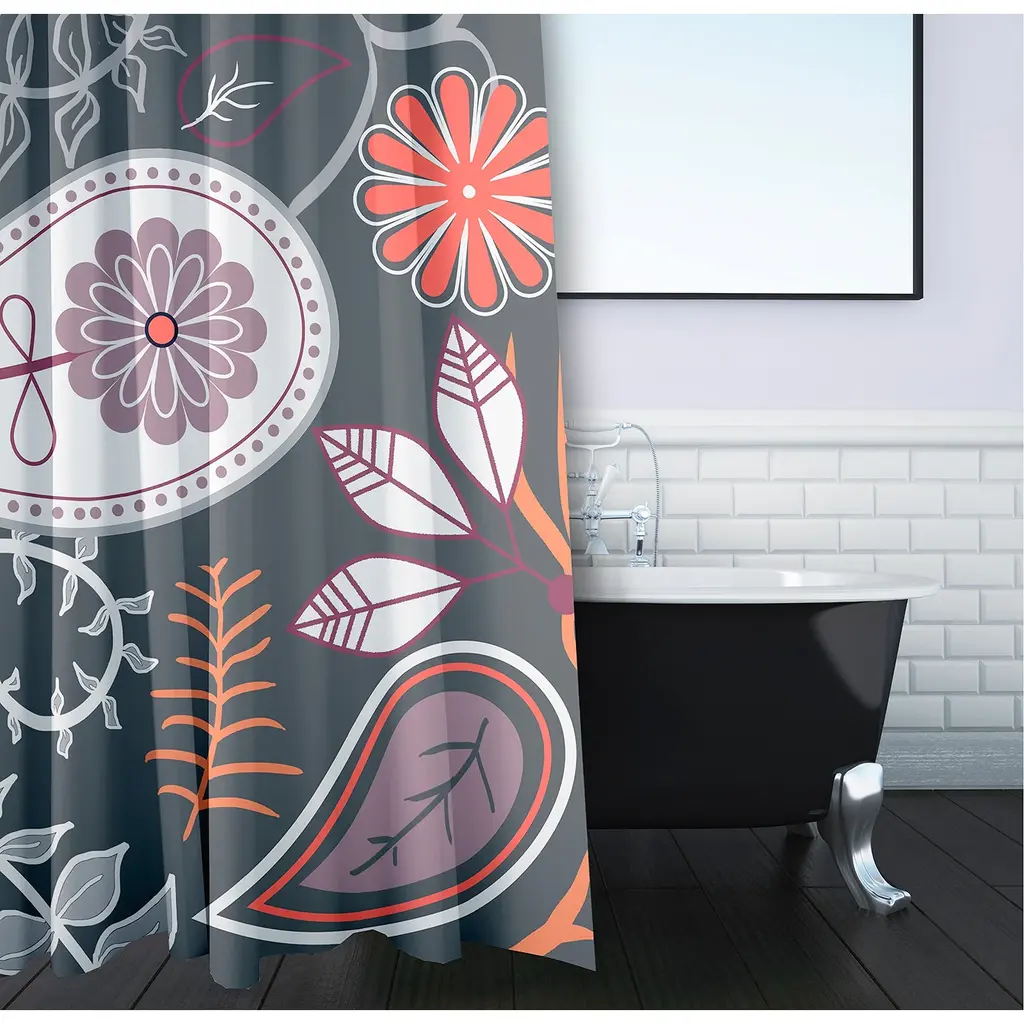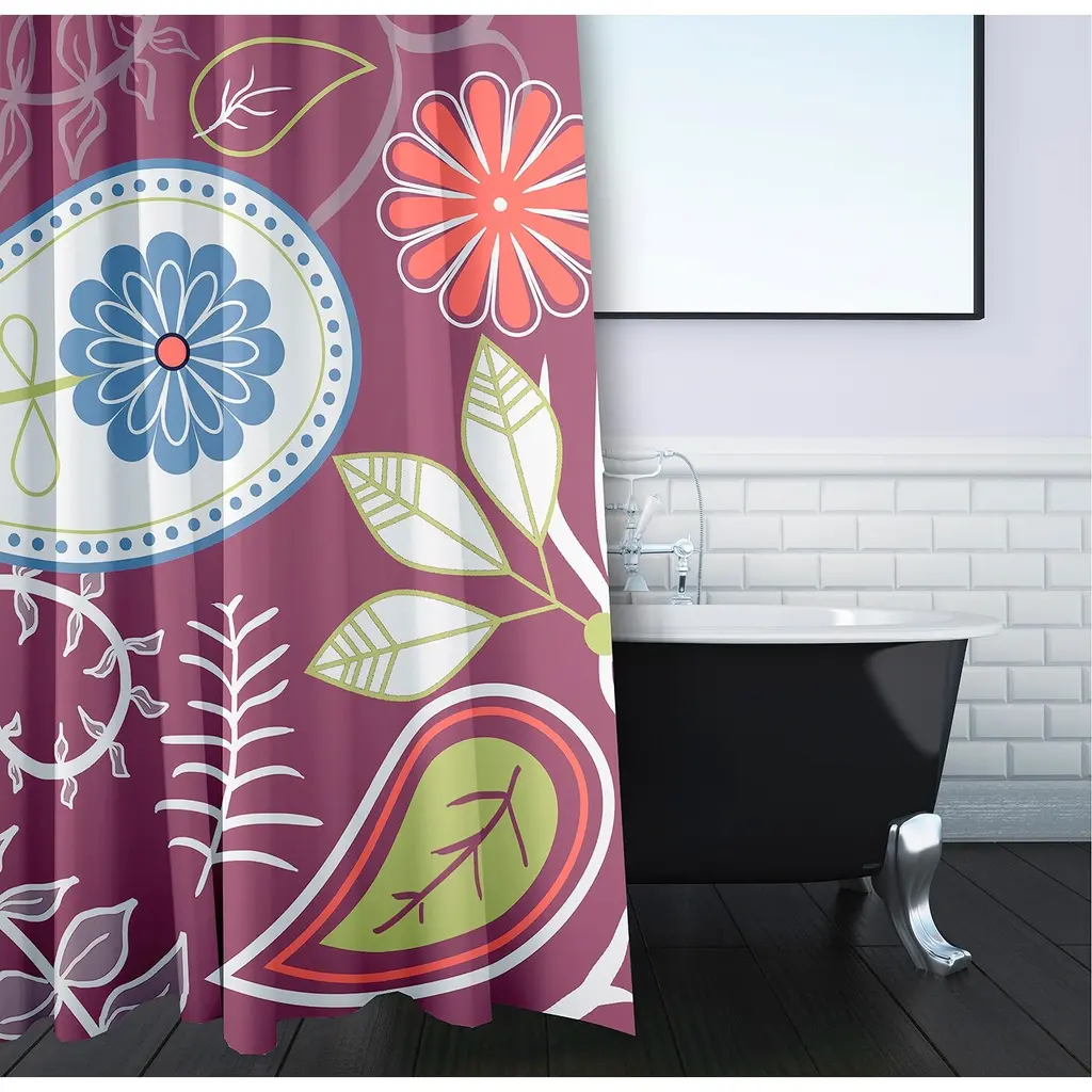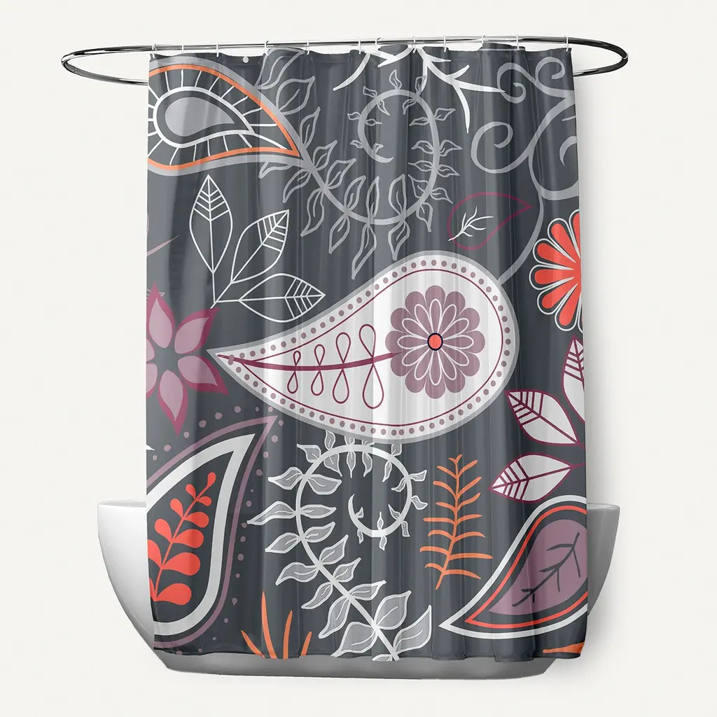 Add a floral touch to enhance your home decor with a Navy Paisley Floral shower curtain from our Botanical Blooms Collection. Everyone will enjoy the welcoming and floral feel that this shower curtain brings to any bath space! Your home decor is guaranteed to bloom with the garden beauty found in this collection.Features:Durable Polyester FabricQuick DryingMachine Washable71" x 74"12 Button Holes for hook placementPattern: PaisleyStyle: Modern & ContemporaryColor Choices: Navy, Teal, Grey, Purple