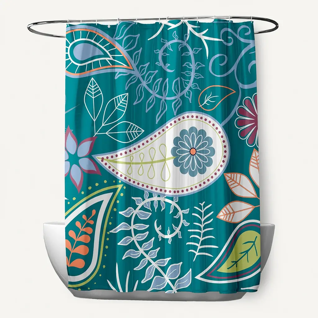 71 X 74 Paisley Floral Print Shower Curtain - Teal