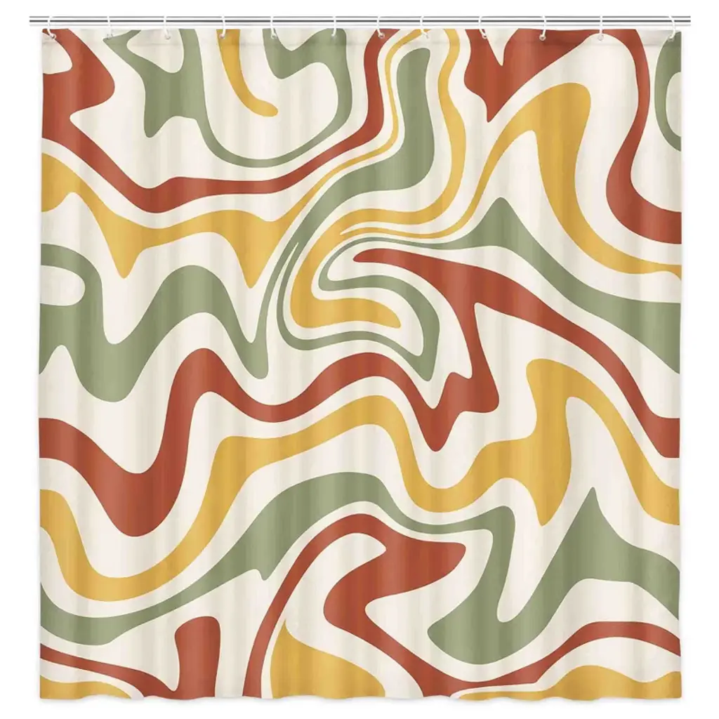 72"x72" Abstract Wavy Swirl Boho Shower Curtain, Pack Of 1