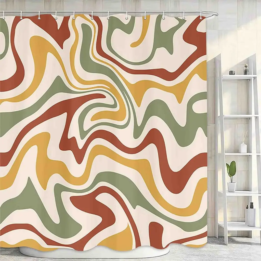 72"x72" Abstract Wavy Swirl Boho Shower Curtain, Pack Of 1