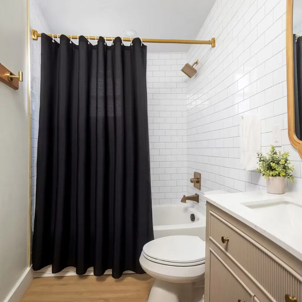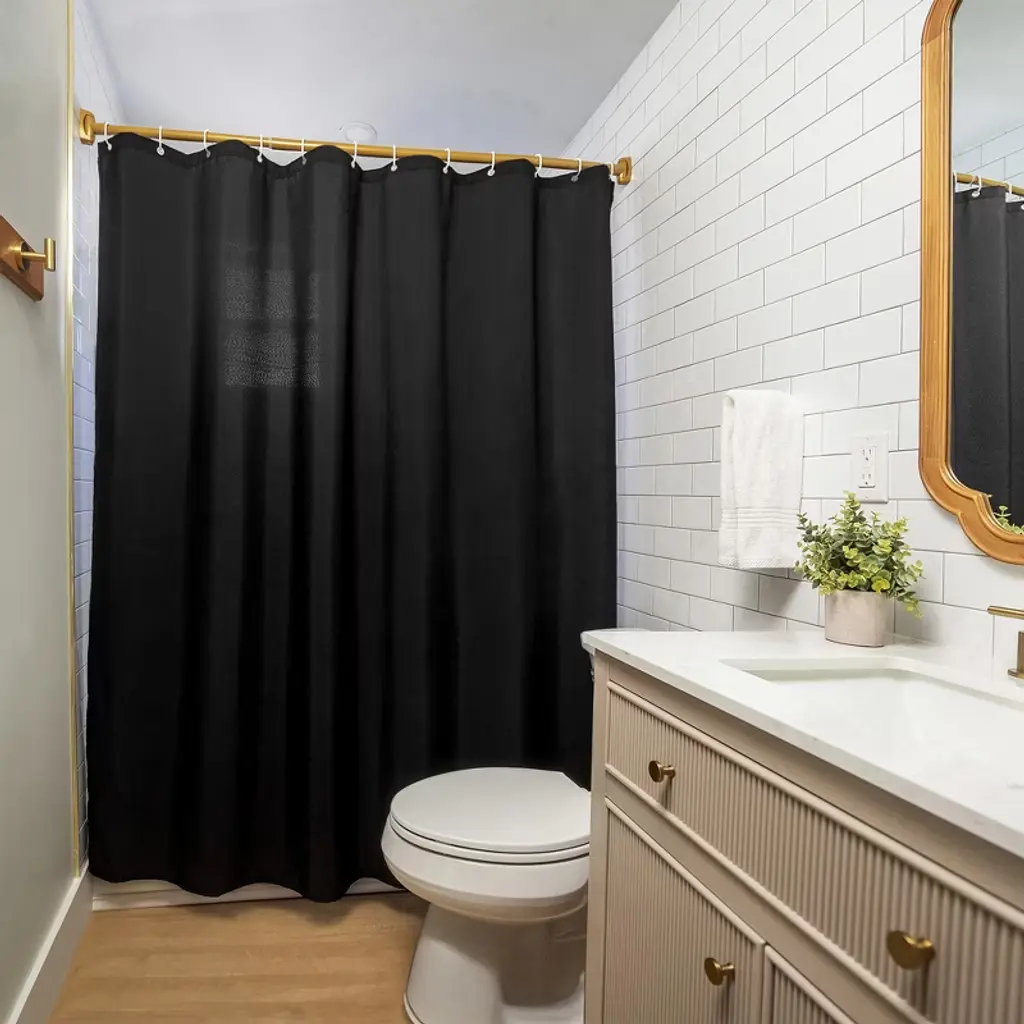 Style your bathroom with our premium range of shower curtains, each expertly designed to allow you to create your ideal bathroom space, thanks to the wide range of solid color shower curtains in our portfolio. Our water-resistant shower curtains feature polyester fabric designs that are non-fading, quick-drying, durable, and hypoallergenic. With an impressive 71x74 size, our luxury shower curtains are suitable for most standard showers and provide privacy and comfort when showering. Our shower curtain packs include 12 easy-to-install durable plastic hanging rings. For hassle-free upkeep, our elegant shower curtains are machine washable. We recommend using a liner. Shower rod is not included. Decorate your shower with our durable shower curtains from Americanflat.