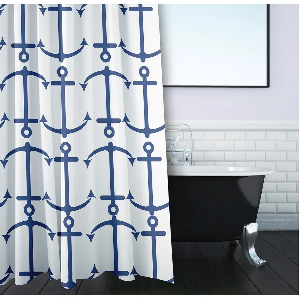 Bring the Seaside to your home decor with the Anchor Pattern Shower Curtain from our Nautical Nights Collection. This durable and decorative polyester fabric shower curtain has a single sided design and a buttonhole top to easily refresh your bath for each season. It is made of 100% polyester that is quick drying. When it needs to be washed, just toss it into your washing machine, and then tumble dry. Your bath decor will be enlivened with this shower curtain's coastal vibe! With the designs in this collection, you will bask in the natural beauty of the shore throughout your home.