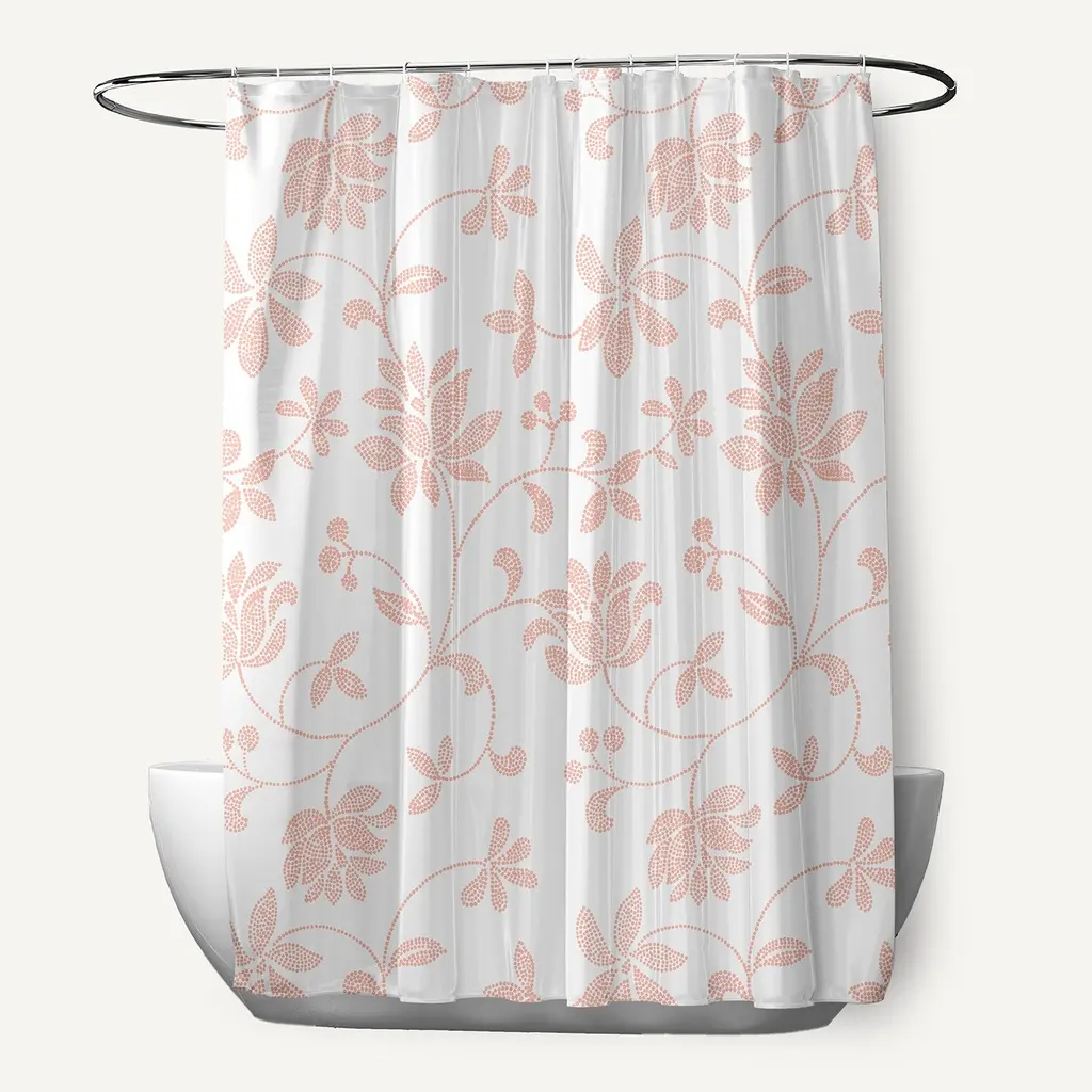 Watch your home decor blossom with a Aurora Shower Curtain from our Floral Frolic Collection. This durable and decorative polyester fabric shower curtain has a single sided design and a buttonhole top to easily refresh your bath for each season. It is made of 100% polyester that is quick drying. When it needs to be washed, just toss it into your washing machine, and then tumble dry. Everyone will enjoy the earthy aesthetics brought to your bath space by this decorative shower curtain! The floral designs of this collection will open your home to the beauty of nature with their warm palate.