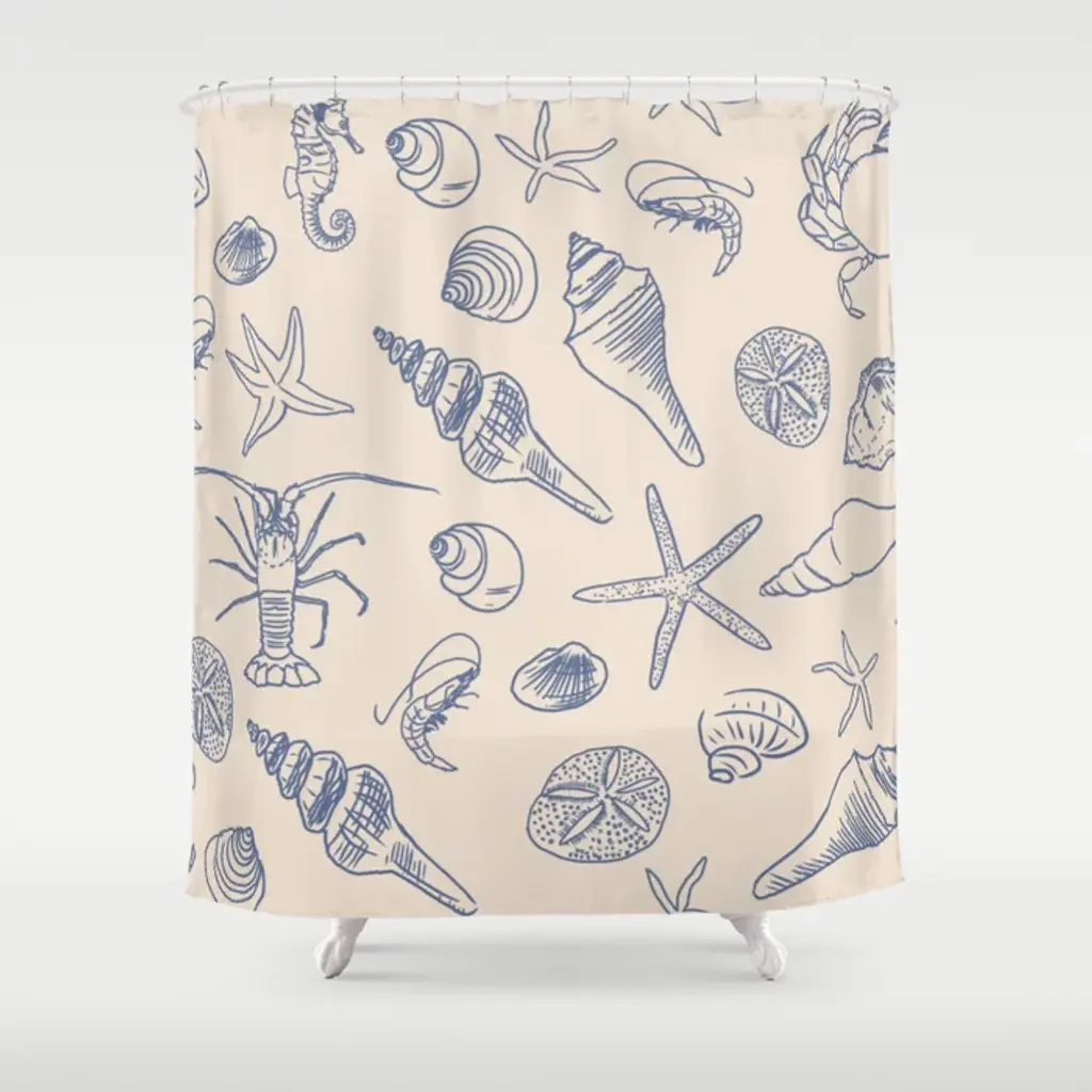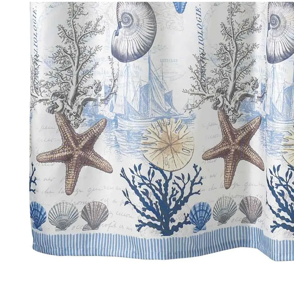 The Avanti Antigua Shower Curtain features a beautifully printed shower curtain with a combination of sea creatures, ships, lighthouses and words with sequins to add a bit of shine. Printed on a textured 100% polyester cloth for brilliant color and easy care. 72" x 72".