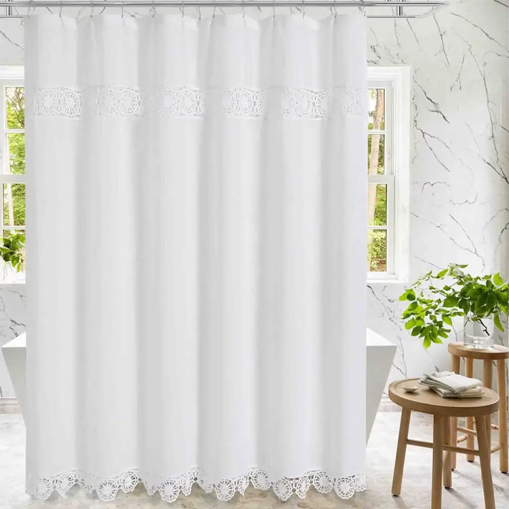 Bagokie 72"x72" Boho Linen Blend Shower Curtain, White
