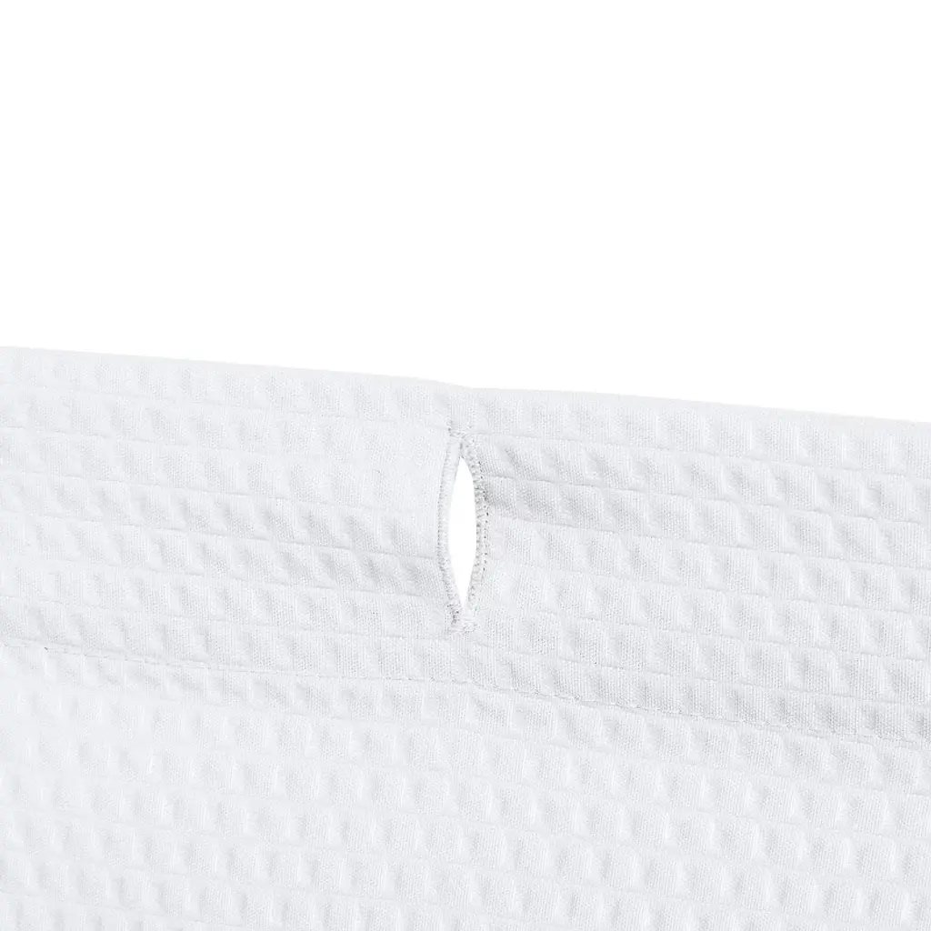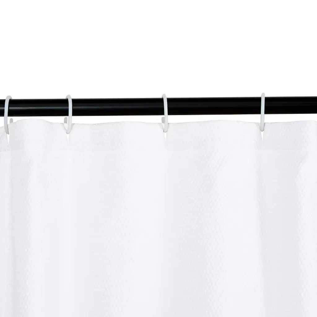 Crafted from 100% polyester, this shower curtain fabric brings durability and elegance together, making it ideal for dorm shower curtain setups or a stylish bathroom shower curtain for your living space. Designed with a textural waffle shower curtain pattern, it adds an understated, polished look to your bathroom, creating a refined ambience. Simple installation is ensured with the built-in ring holes, although the curtain rings are not included. To maintain its pristine appearance, use with an interior shower curtain liner, which is not included.