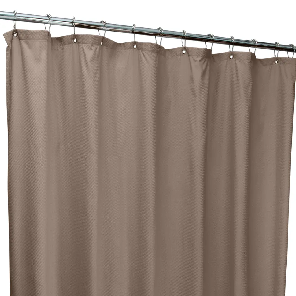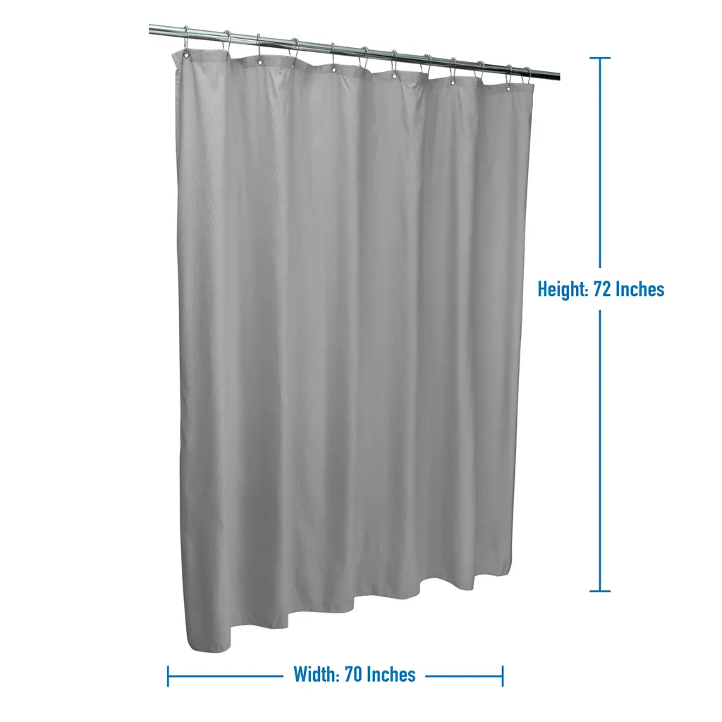 Add a bit of luxury and style to your bathroom with the Bath Bliss microfiber soft touch shower curtain liner. Designed with a richly textured machine washable fabric. The reinforced header, magnet weighted hem and 12 never rust grommets are all the features of a top of the line shower curtain. The fabric repels water and quickly dries in between uses. The design and look of the curtain will spruce up any bathroom and fit in with any decor!