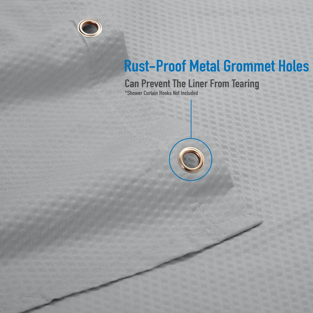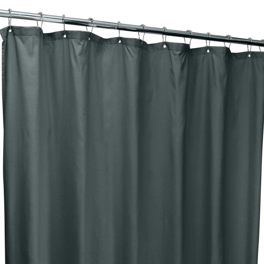 Add a bit of luxury and style to your bathroom with the Bath Bliss microfiber soft touch shower curtain liner. Designed with a richly textured machine washable fabric. The reinforced header, magnet weighted hem and 12 never rust grommets are all the features of a top of the line shower curtain. The fabric repels water and quickly dries in between uses. The design and look of the curtain will spruce up any bathroom and fit in with any decor!